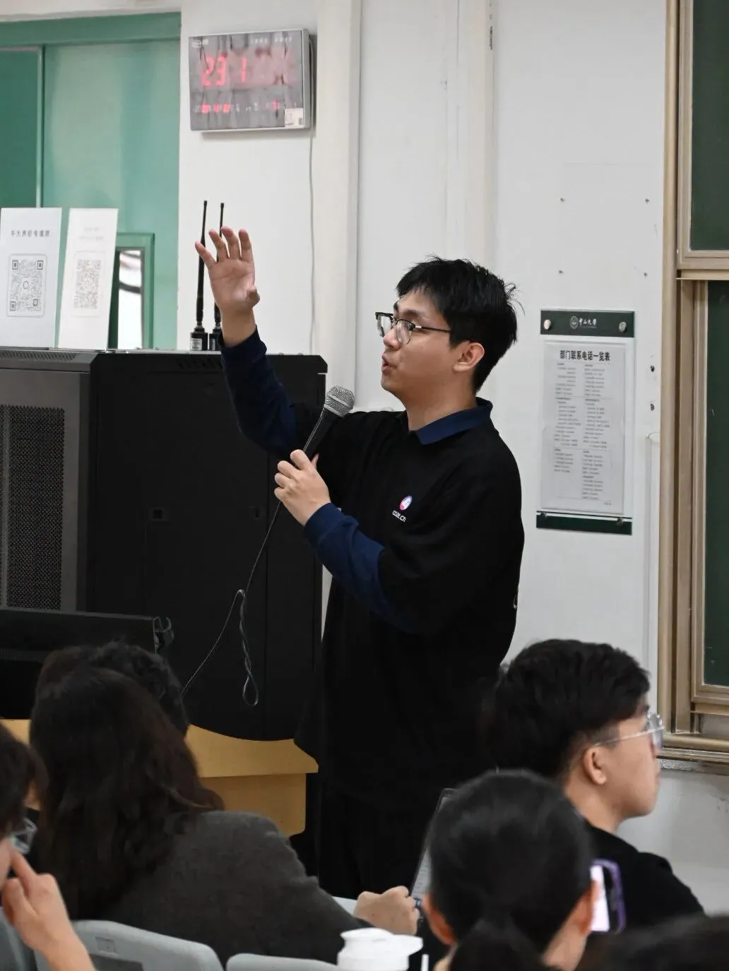 作为毕业8个月的学长,他结合自身从中山大学到 Shopee 的成长经历,分享了在 AI 浪潮中的三点感悟:尽量用 AI 但不过度依赖,不放弃独立判断,并保持长远眼光。他强调,在就业与升学的选择中,要结合时代趋势和个人规划,并通过参与项目、作品实践和实习来进行扎实准备。他以自己在校参与的软工集市、无人车、大模型代码搜索等项目为例,鼓励学弟学妹们在行动中构建自己的知识体系,主动探索属于自己的道路。