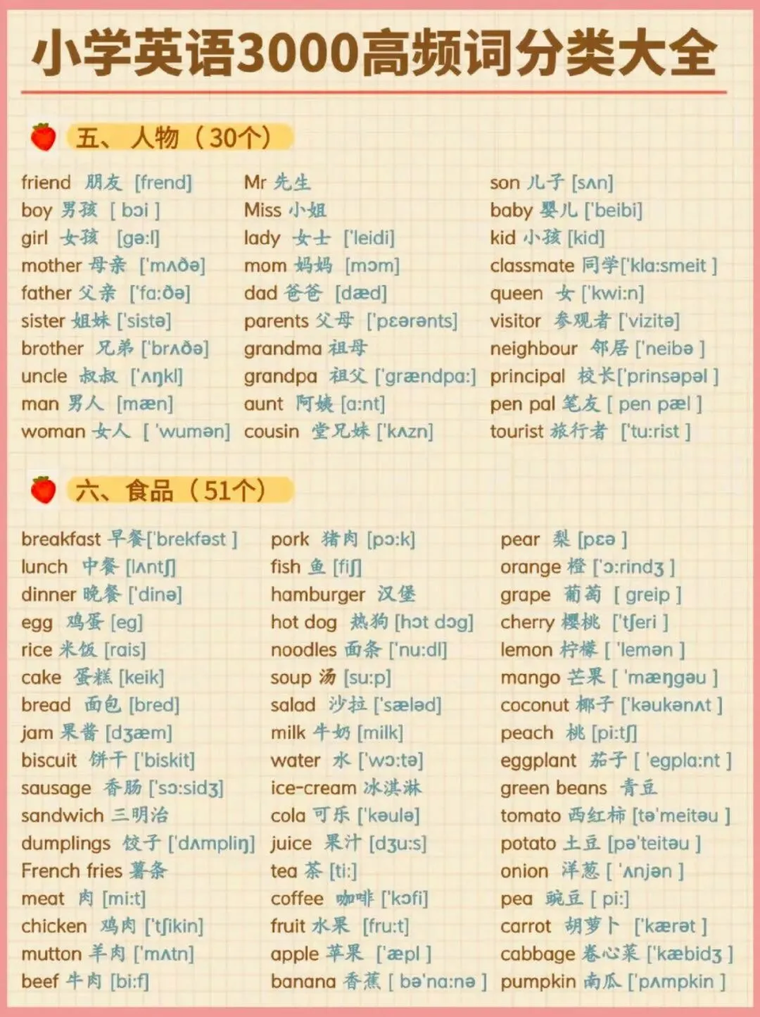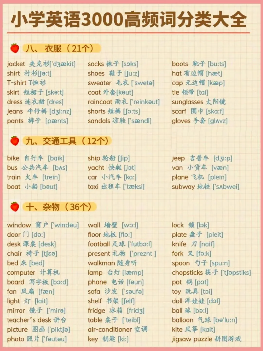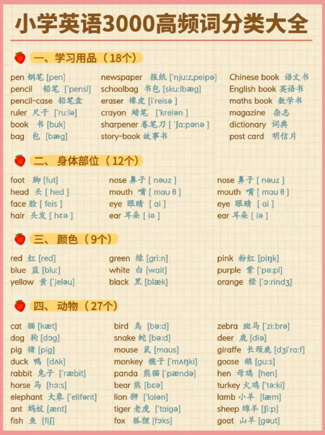 小学英语3000高频词分类大全,可下载打印,建议收藏