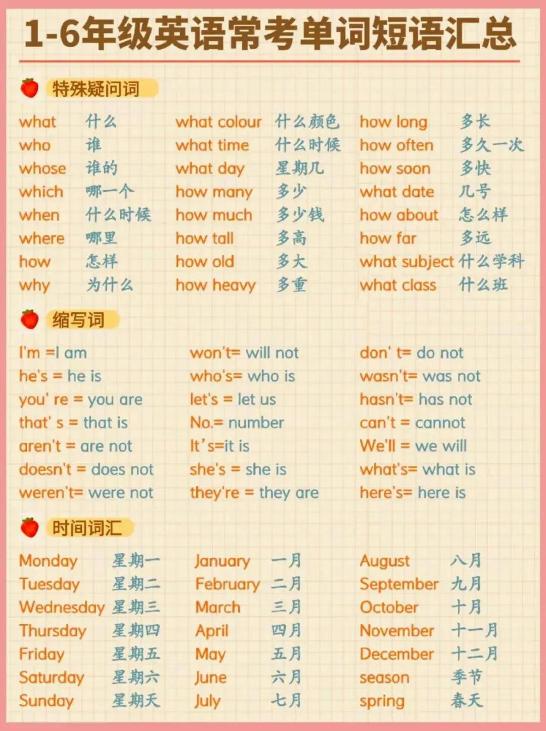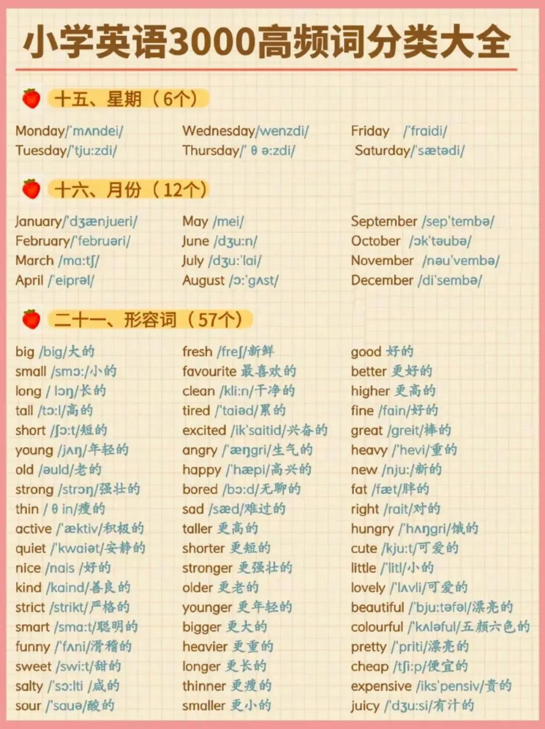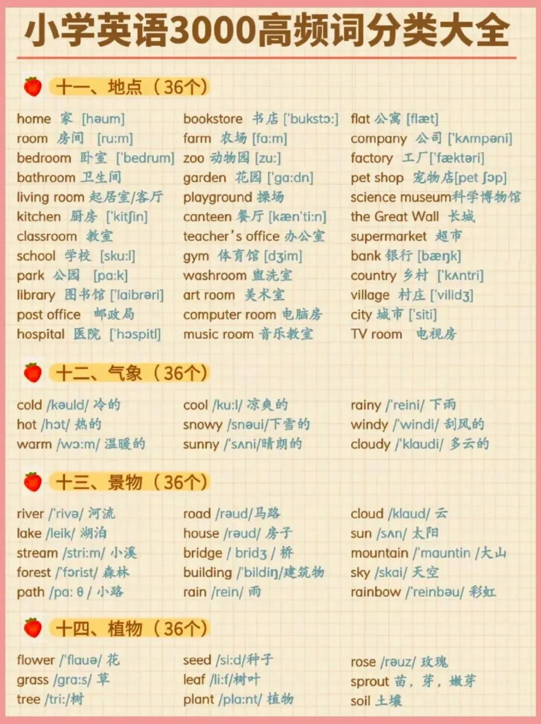 小学英语3000高频词分类大全,可下载打印,建议收藏