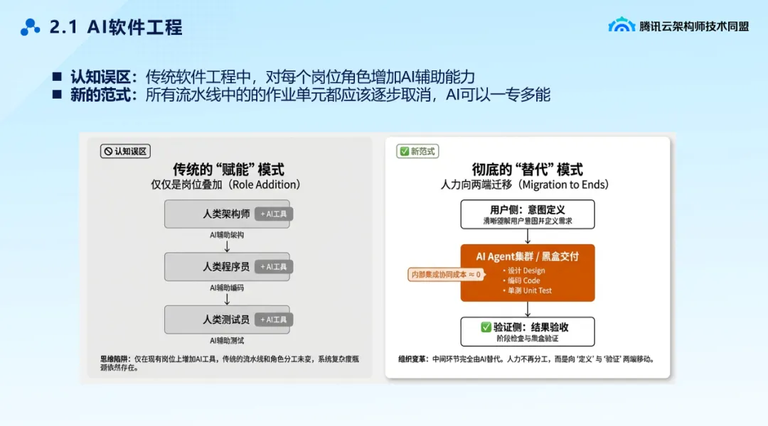 周末参加了腾讯云架构师深圳同盟的线下活动,各位老师都相当精彩。我今天主要分享下何明璐老师的《AI时代的软件工程-从面向代码到SDD面向规约驱动》