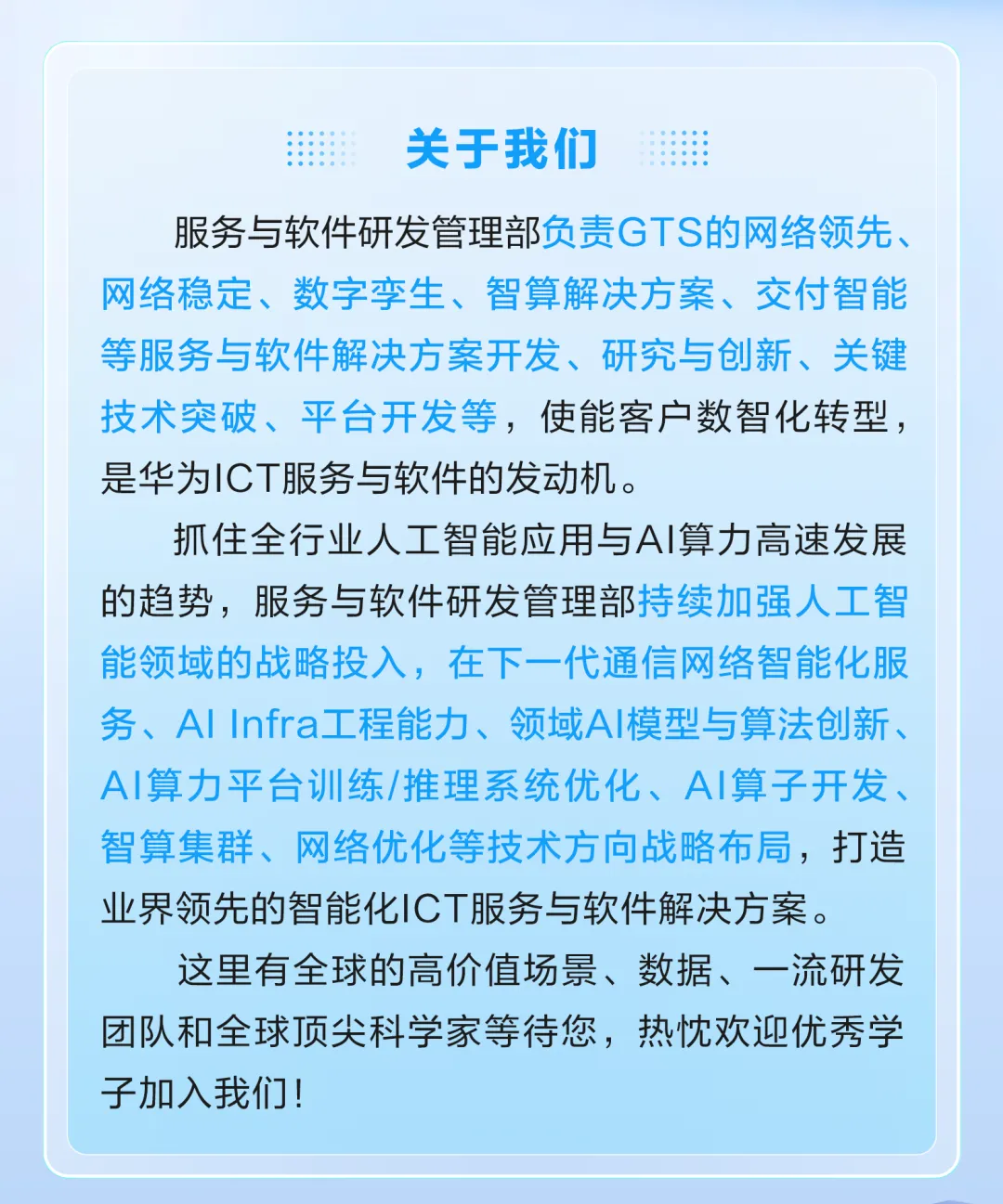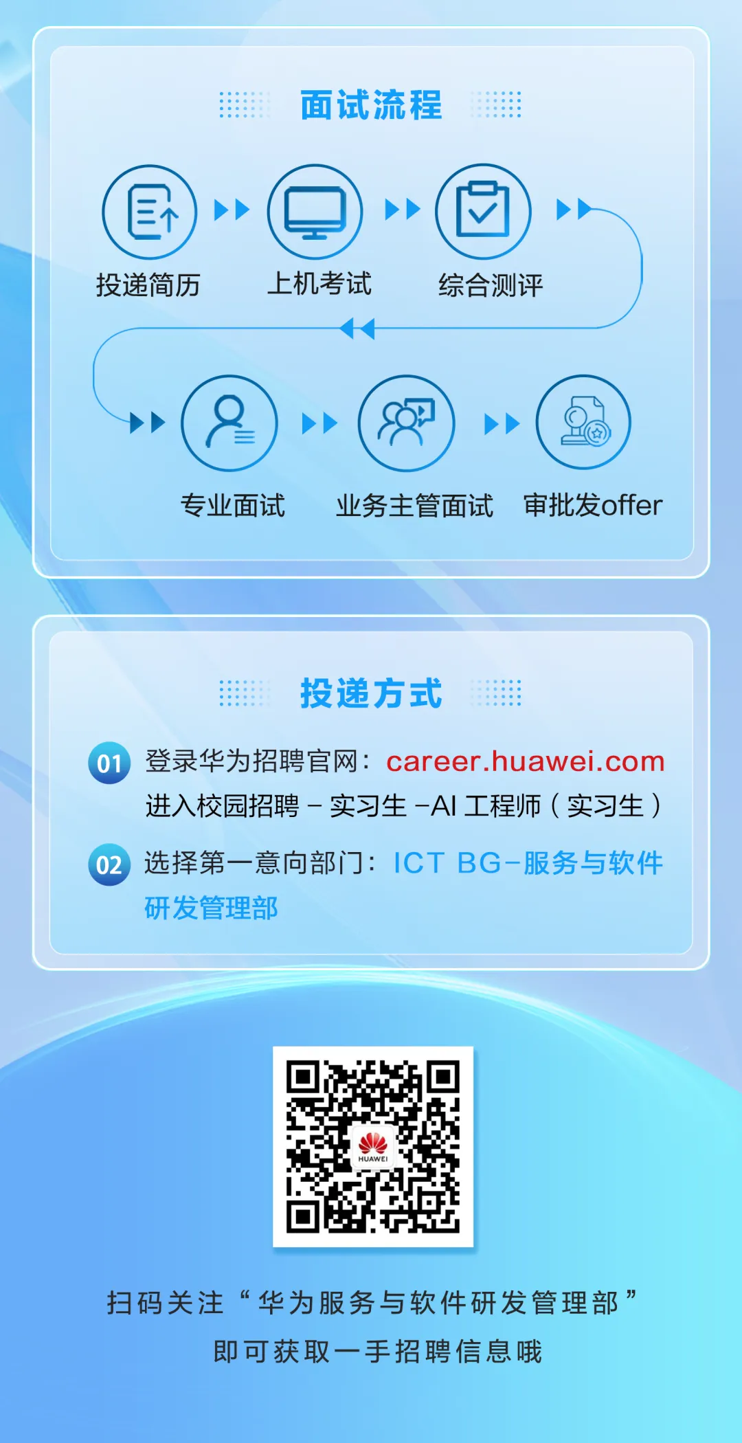 AI实习生招聘 | ICT BG-服务与软件研发管理部AI实习生招聘进行中!