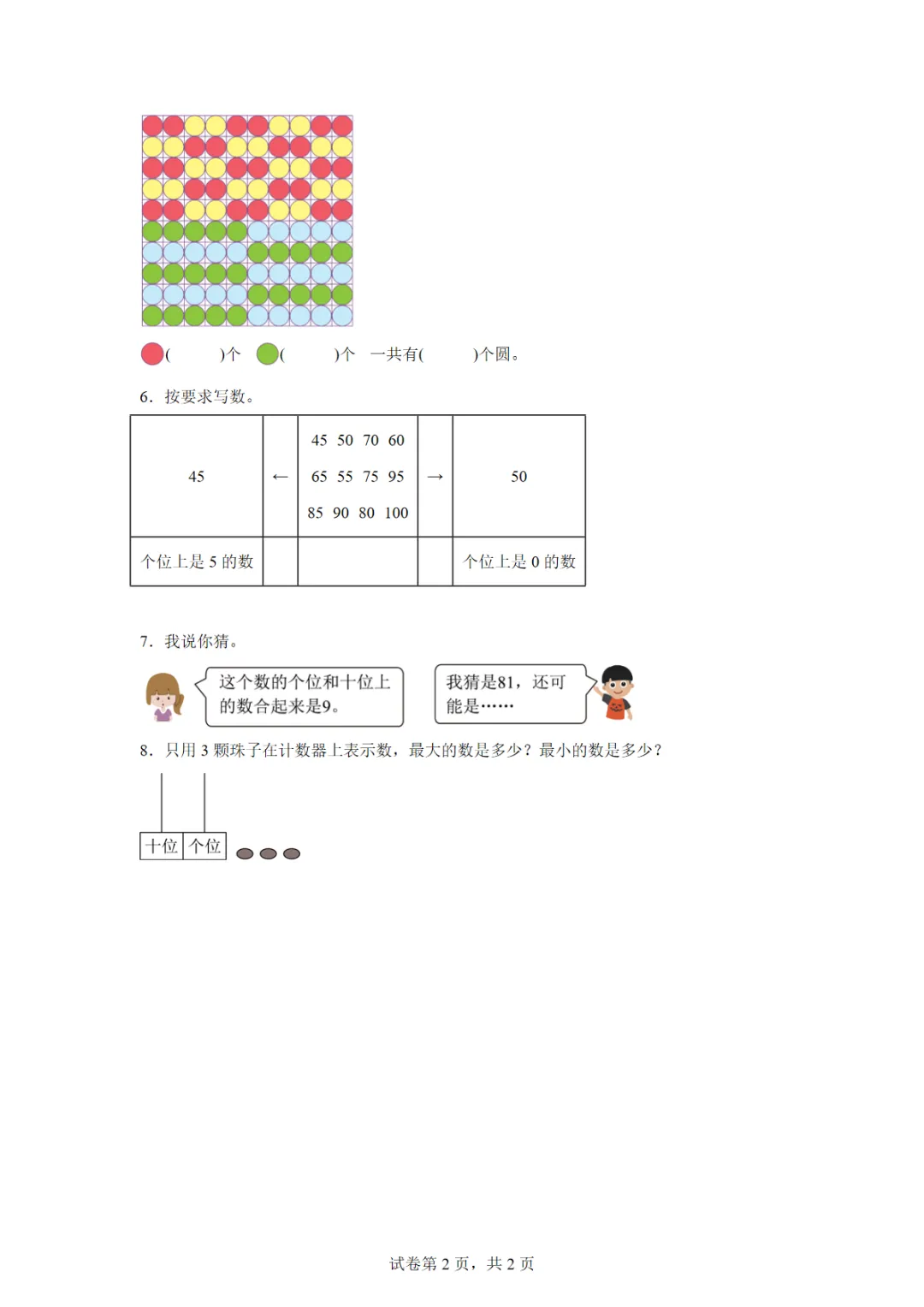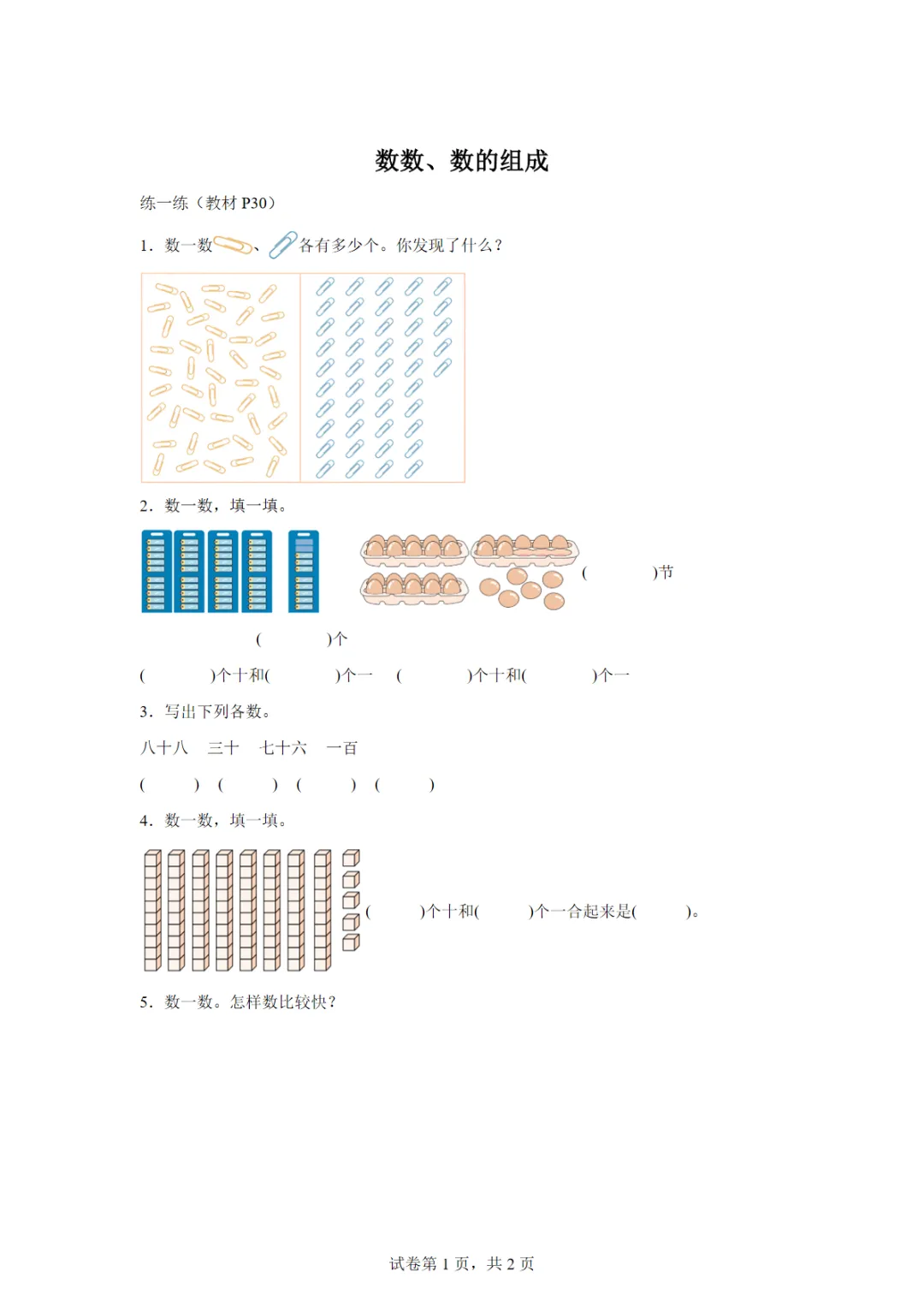 人教版数学一年级下册3.1 数数、数的组成 教材课后练习