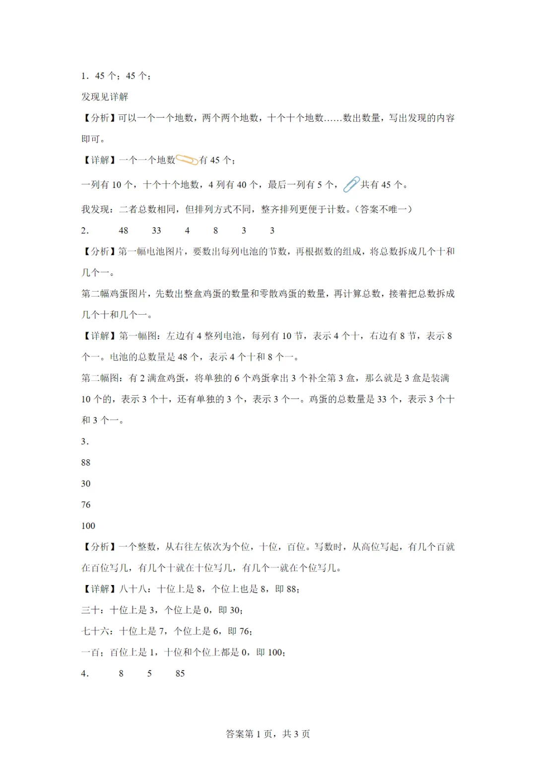 【高清电子版】人教版数学一年级下册3.1 数数、数的组成 教材课后练习