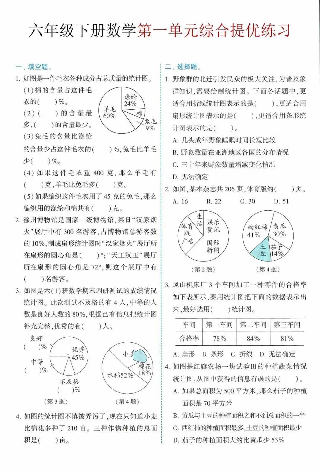 【高清电子版】六年级(下)数学 第一单元综合提优练习(苏教版)