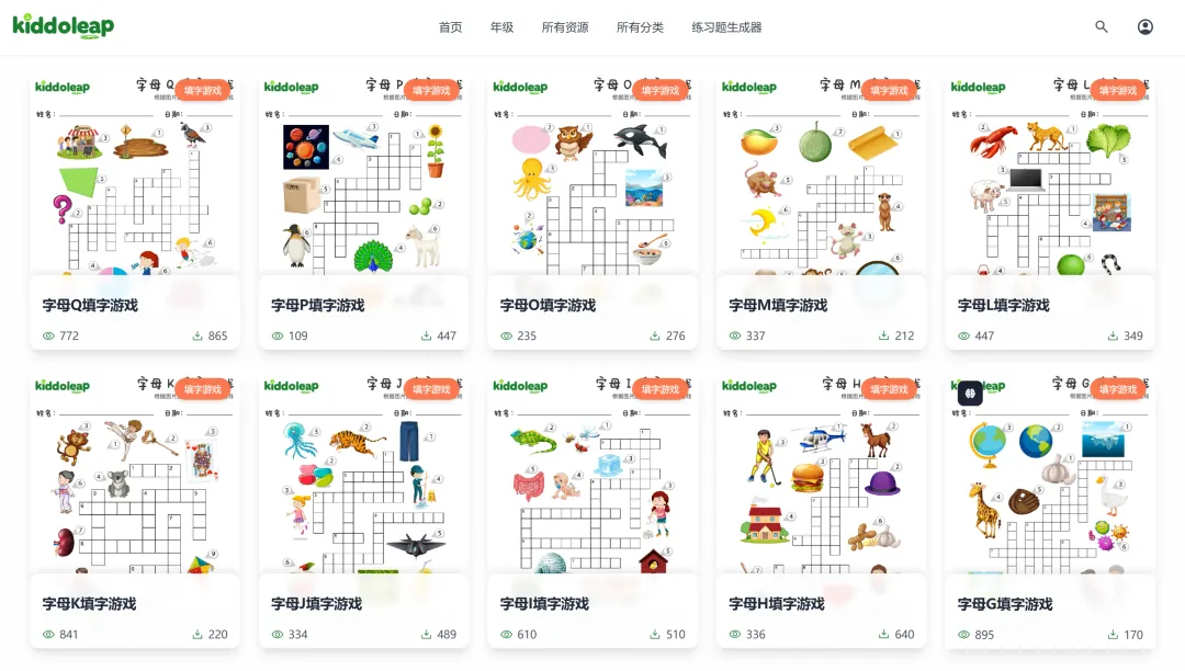 在“填字游戏”分类中,整理了多种主题的填字游戏,如动物、水果、颜色和日常生活等内容。孩子们可以一边动脑思考,一边学习新词汇,使学习过程更加轻松自然。填字游戏不仅有助于孩子积累词汇,还能提升专注力和逻辑思维能力,是非常实用的学习资源。