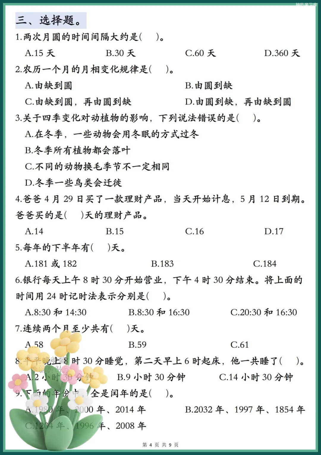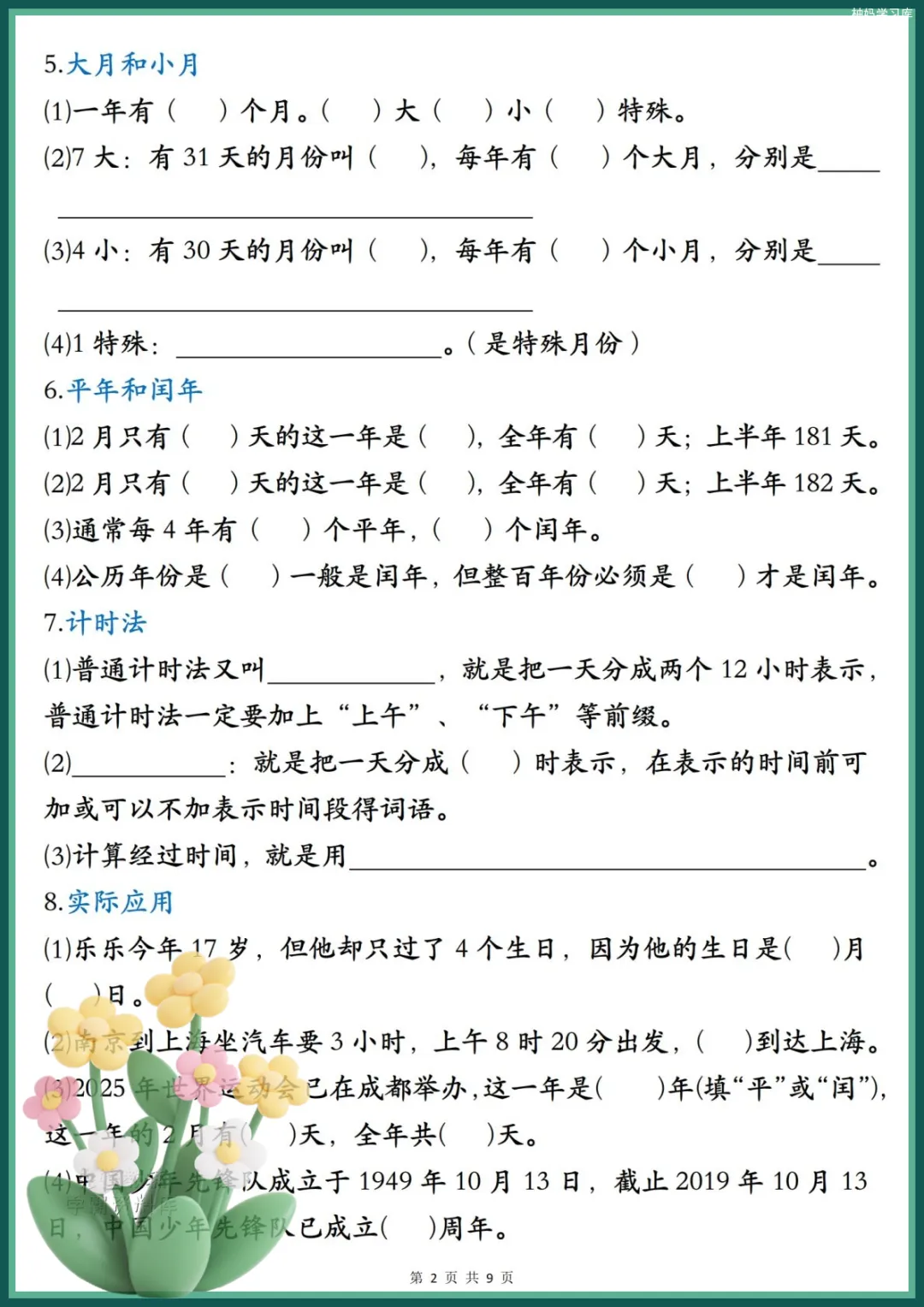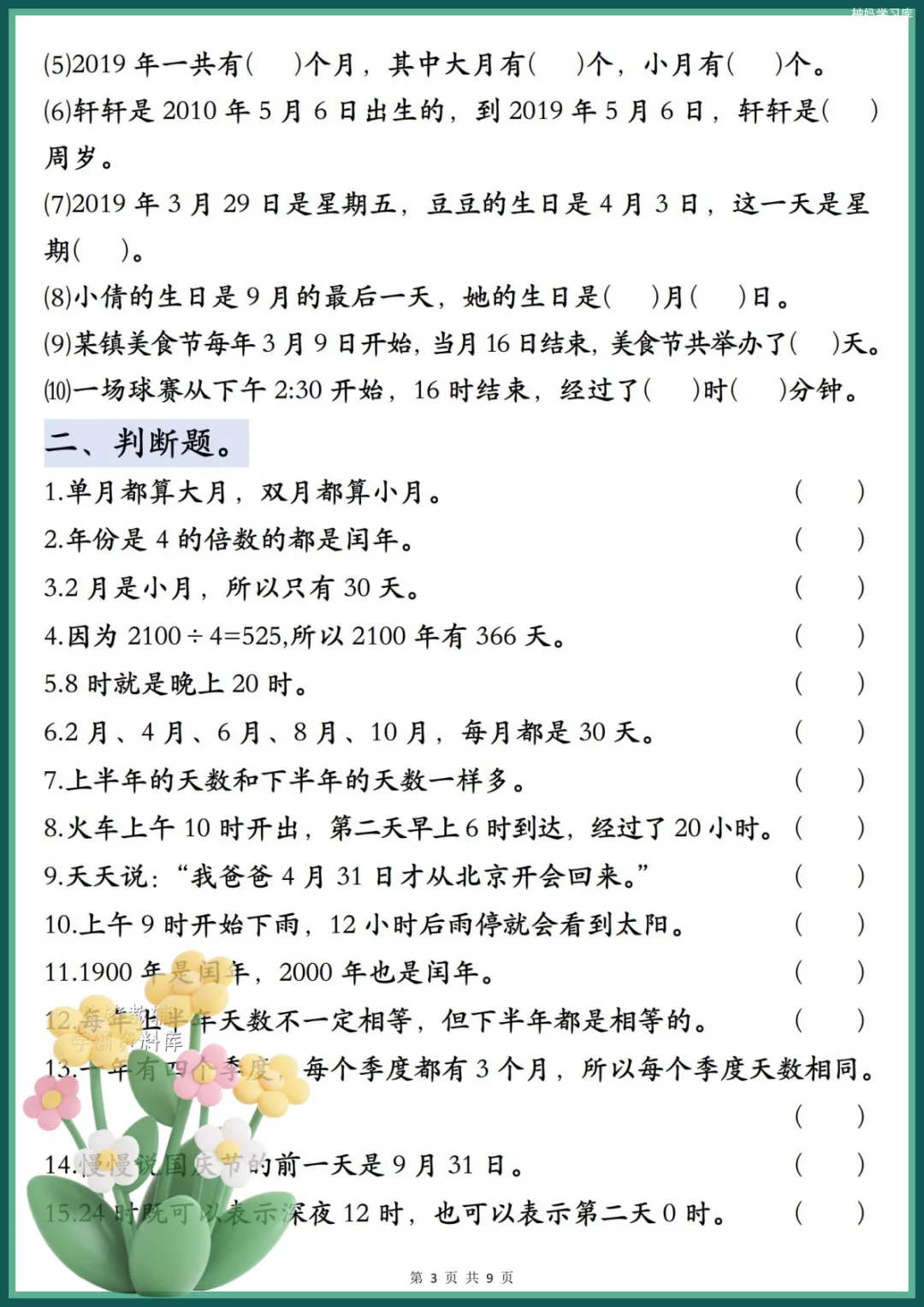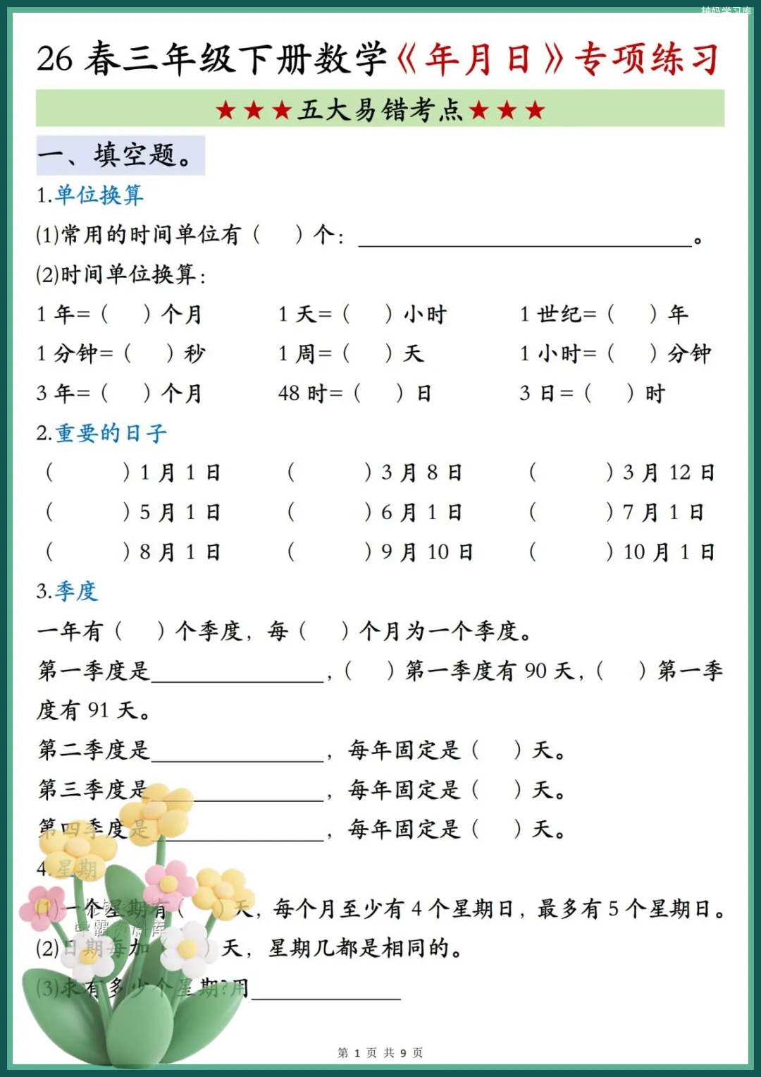 嗨~你好呀!今天给大家分享的是三年级下册数学《年月日专项练习》电子版可打印