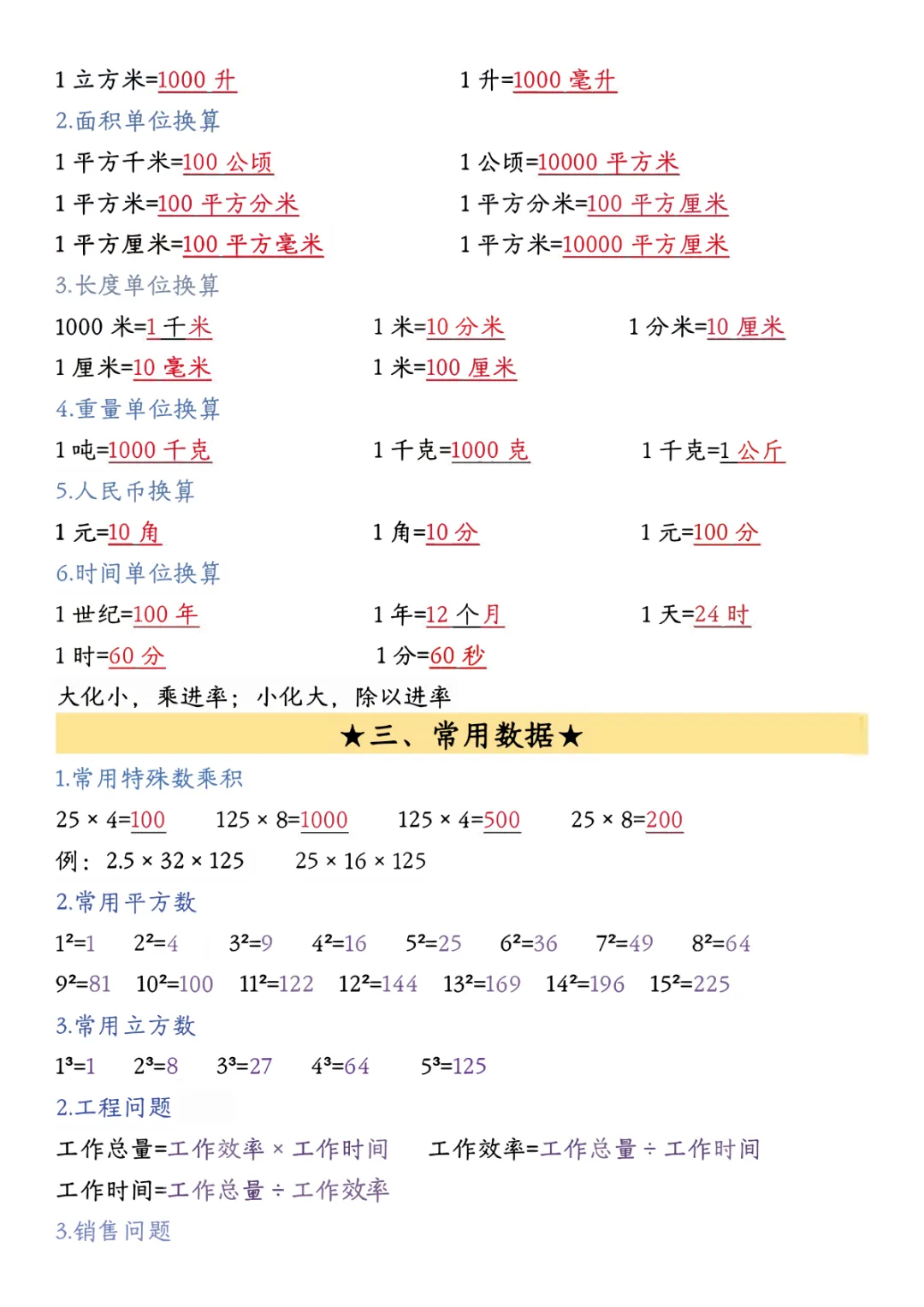 五下数学 26春必背公式汇总电子版PDF,15页,免费下载