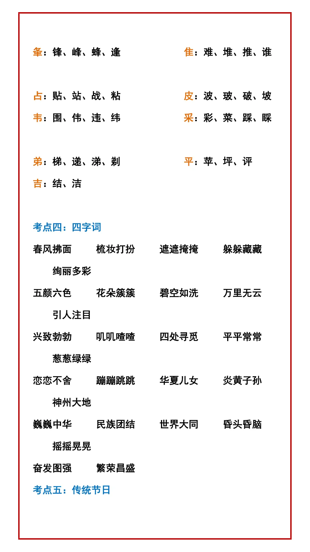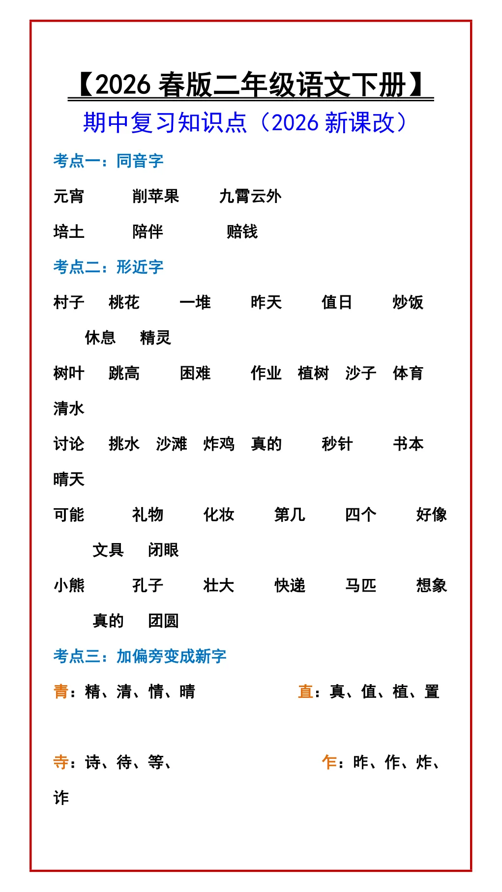 二年级(下)语文 期中复习知识点电子版PDF,4页,免费下载