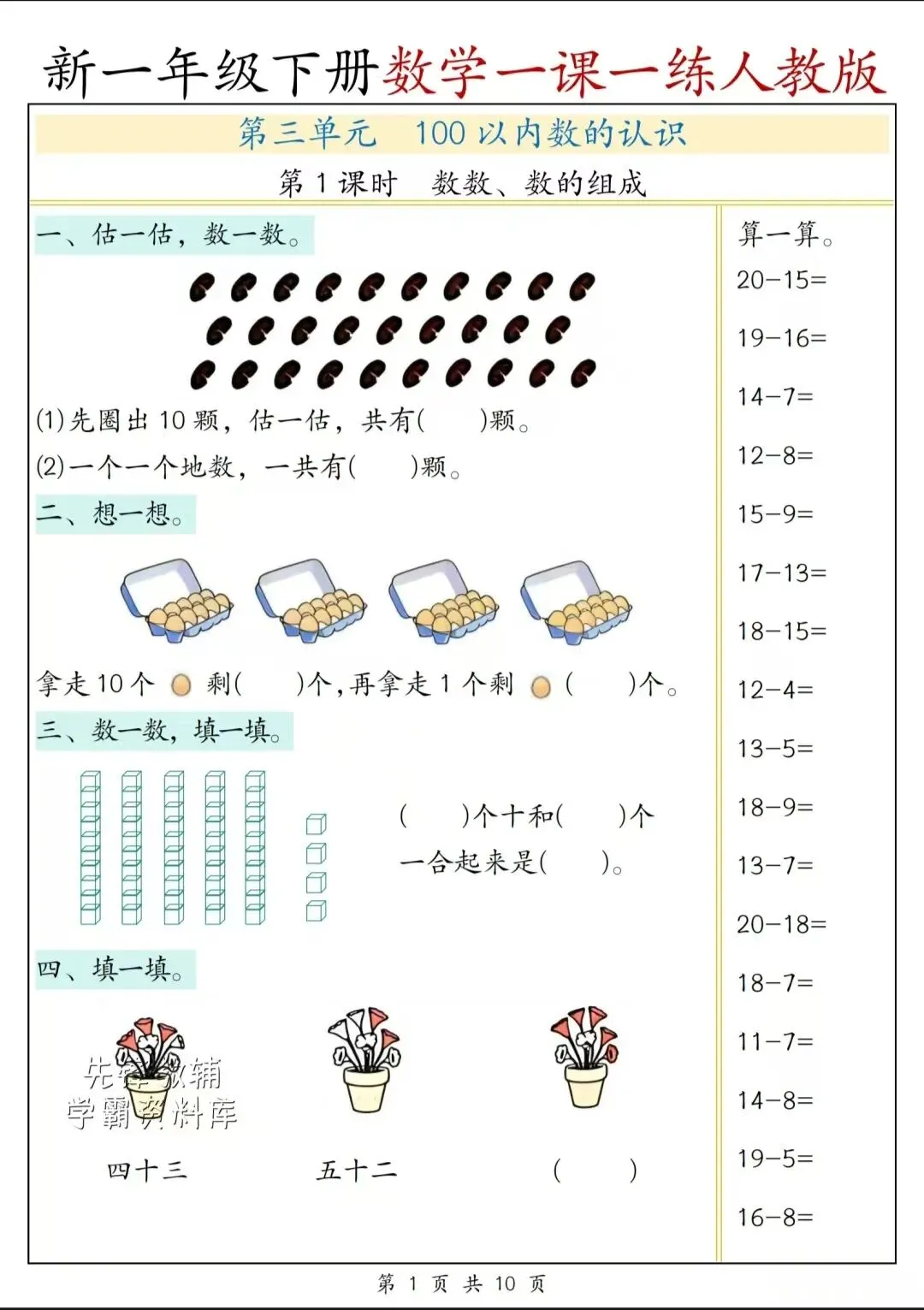 一年级下册数学第四单元知识点专练,可打印 一年级下册数学第四单元知识点专练,需要的家长赶紧打印出来给孩子练一练吧! 领取更多学习资料: ①:点一点右下角的“👍”和“❤️”! ②:左下角↓点“关zhu” ③:在公众号对话框回复:下载打印