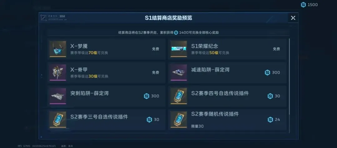 赛季更迭的关键节点,S1结算商店是资源获取的“第一桶金”。遵循以下兑换逻辑,能让你在S2开局快人一步: