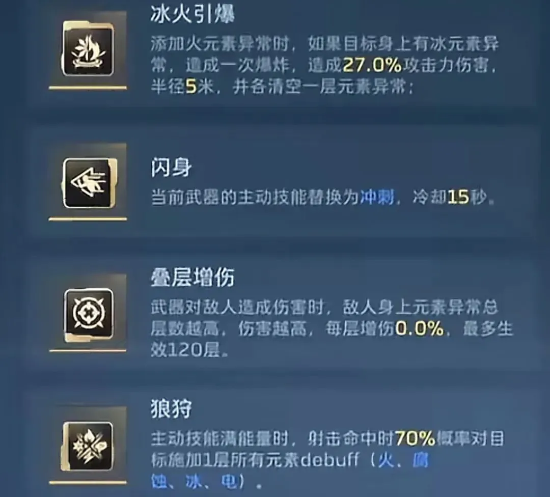 装备后,副武器处于后台时,前台主武器的元素异常概率提升24% —— 无论是死神的元素爆炸,还是兽神的榴弹爆发,都能因此获得巨大加成。这个插件几乎是“人手必备”,优先级甚至高于部分主武器插件。