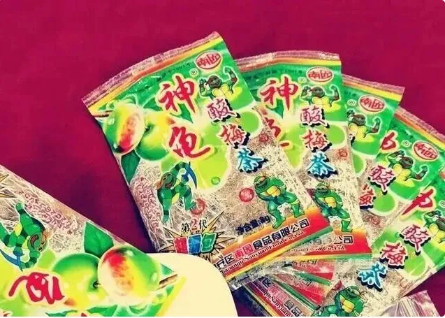 图里这个绿色包装,就是有年头的酸梅粉,名字叫神龟酸梅粉,袋子一撕开,里头有个迷你小勺子,蘸一下粉,酸得脸都皱成一团,偏偏管不住嘴,一下午能嗦完一小袋,有时酸得想哭,刚想收手,朋友又递过来一勺儿,现在的梅粉改良得太温柔,吃起来没脾气。