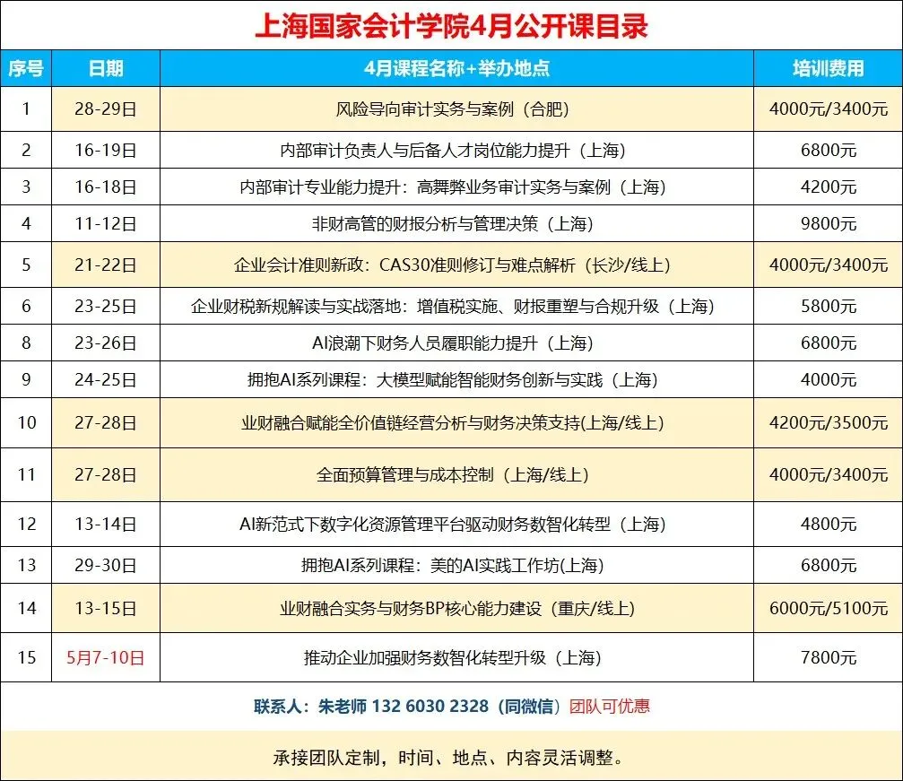 全新!上海国家会计学院2026年企业财税审计课程计划.xlsx