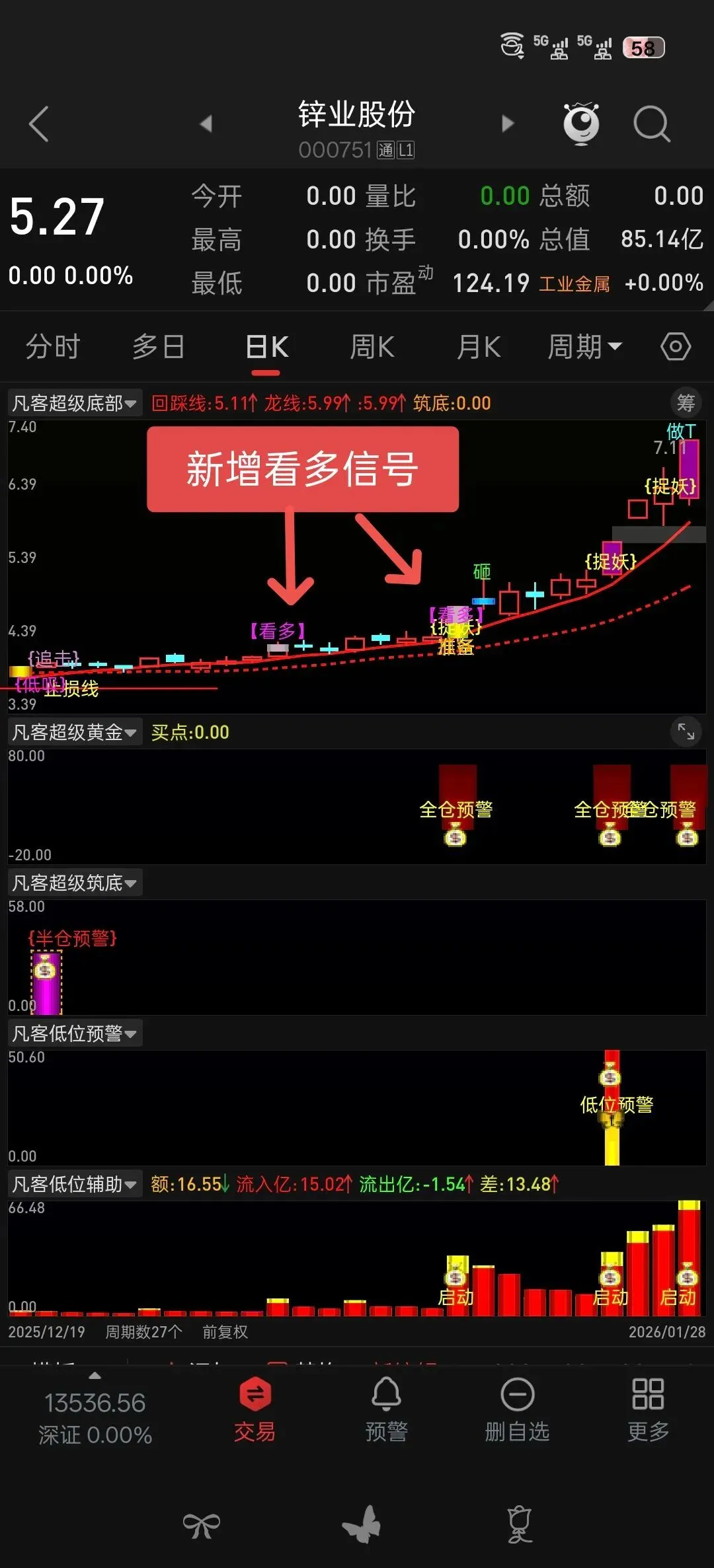 T2:=REF(T1,1) AND C>O AND V>2*REF(V,1) AND H/REF(C,1)>1.08 AND ST>1.02 AND SYX>3;