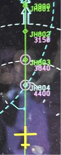 在这个场景中,尽管显示剖面偏高,但飞机在到达JH804定位点前就能恢复平飞,因此无需过度担心剖面问题。