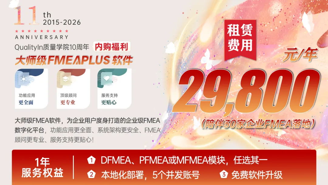 欢迎试用FMEA软件,请联系QualityIn质量学院客服小Q: