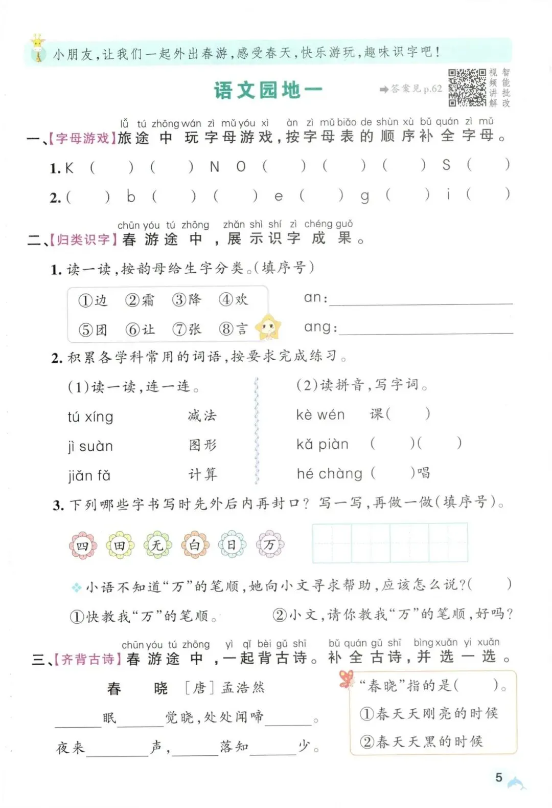 26春一年级语文下册《小学学霸作业本》 可免费下载打印
