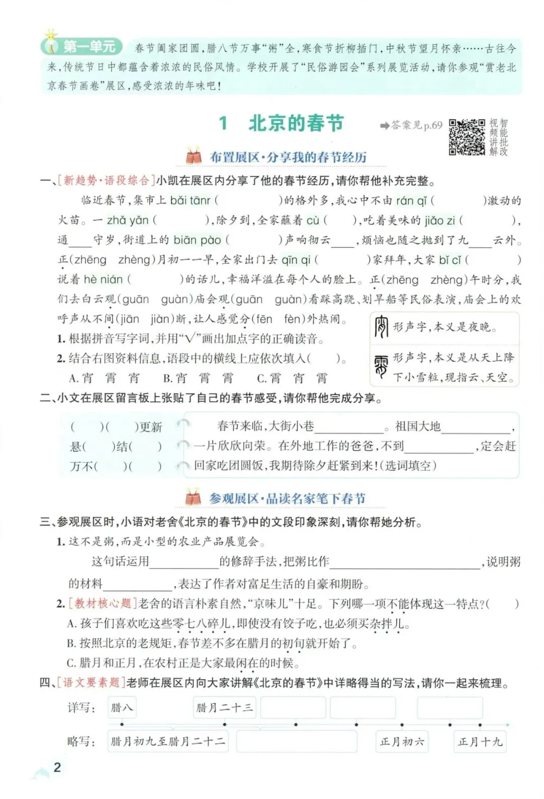 「26春语文1-6年级下册《王朝霞单元活页卷》」