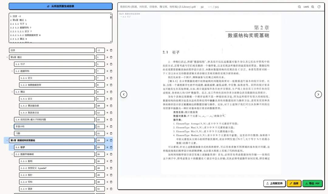 待处理的PDF资料通常存在目录缺失问题,比如仅显示页码无目录标题,甚至完全无目录内容,导致无法快速定位章节,阅读体验差。