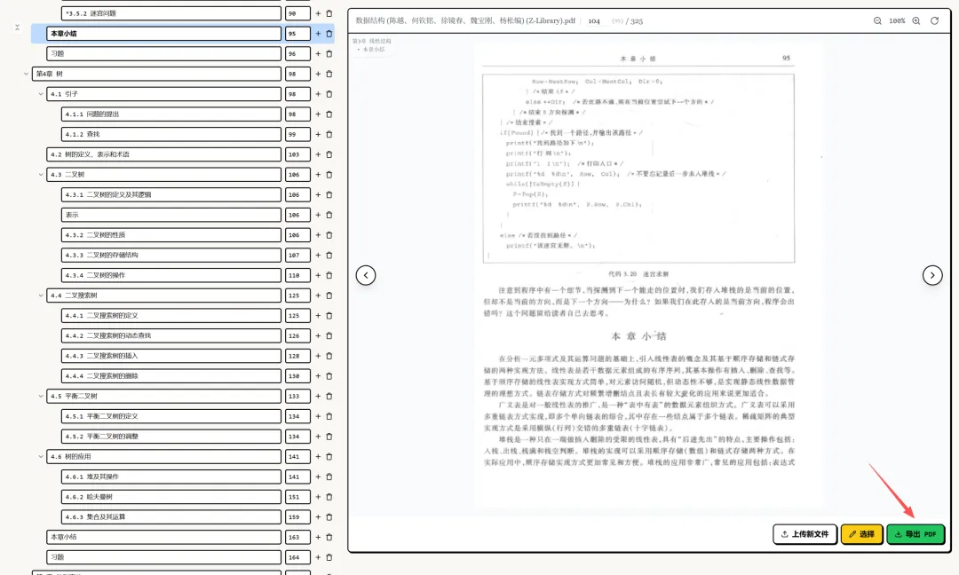 确认目录无误后,点击工具界面的“导出PDF”按钮,将生成好目录的PDF文件保存到本地设备。