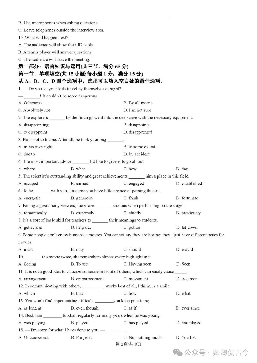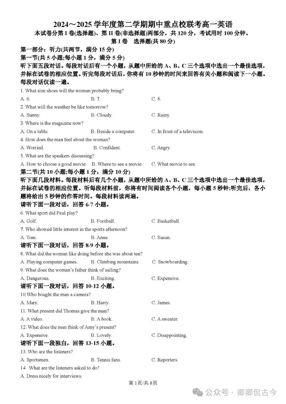 【可下载】天津市五区县重点校联考2024-2025学年高一下学期4月期中英语试题(附解析) 点击上方“蓝字”免费关注! 本套试卷+答案解析下载入口 关注“卿卿侃古今”公众号 在聊天对话框内发送关键词 589 相关链接: 2007-2025年天津市高考英语真题汇总(持续更新中~) 2011-2023年天津高考英语听力真题在线测试 【考前热身】天津高考英语听力真题 【高考英语听力在线测试】高考听力机考模拟试题大全(持续更新中) 【可下载】2025-2026年高中英语试题汇总(附解析)【持续更新中】 【汇总】高中英语月考和期中期末试题(持续更新中~) 【题库】高一英语试题汇编(持续更新中~) 【题库】高二英语试题汇编(持续更新中~) 【题库】高三英语试题汇编(持续更新中~) 【可下载】高三英语上学期期末试题16套(附解析) 【可下载】高二英语上学期期末试题10套(附解析) 【可下载】高一英语上学期期末试题汇9套(附解析) 【可下载】2025-2026学年度高一高二高三开学考试模拟试卷(天津专用)(附解析) 新外研版高中英语高清电子课本、课文原文和译文、单元同步复习资料和试题【持续更新中】 【目录1】高中英语阅读理解限时训练大全(持续更新中~) 【目录2】高中英语完形填空限时训练大全(持续更新中~) 【目录3】高中英语书面表达大全(持续更新中~) 【目录4】高中英语听力训练大全(持续更新中~) 【目录5】高中英语单选题大全(持续更新中~) 【目录6】高中英语语法题大全(持续更新中~) 【目录7】高中英语阅读表达题大全(持续更新中~) 【目录8】科普知识汇总 【目录9】中高考学法知识汇总 【目录10】高考英语真题+名校模拟真题+月考和期中期末试题(持续更新中~) 【目录11】暑期高考英语备考资料大全持续更新中~【汇总】中高考志愿填报资料大全 【汇总】高中英语月考和期中期末试题(持续更新中~) 【汇总】2025届高三英语一模试题(附解析) 【汇总】2024届高三英语一模二模三模试题(附解析) 【汇总】2024届高考英语押题卷(附解析) 【汇总】2025届高三英语周考综合练(附解析) 【题库】高三英语限时训练(持续更新中~) 【模拟】2025届高三英语听力机考模拟试题在线测试 【高考词汇】(新)外研版高中英语全七册词汇表(附音频) 【中考词汇】初中英语外研版必备单词表(完整版),可打印 建议收藏保存 点击阅读原文查更多