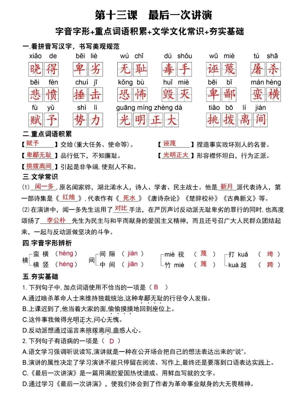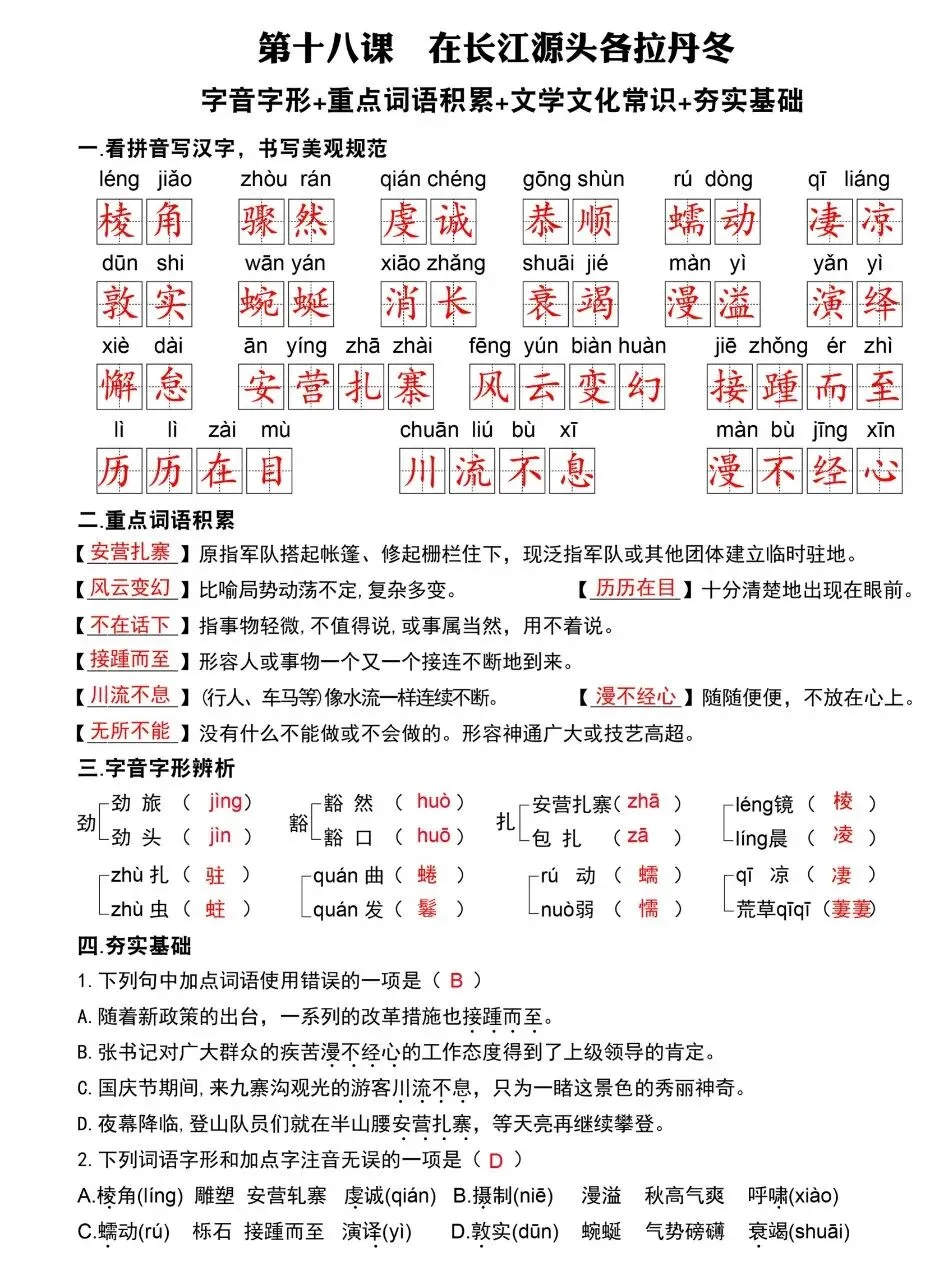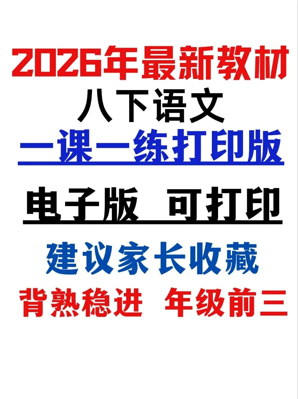 很多同学语文学习没章法,课前不预习、课后少练习,成绩一直上不去。今天给大家分享2026年最新教材八下语文课堂一课一练打印版,由老师精心整理,每一课都配套对应练习,边学边练、扎实提分。