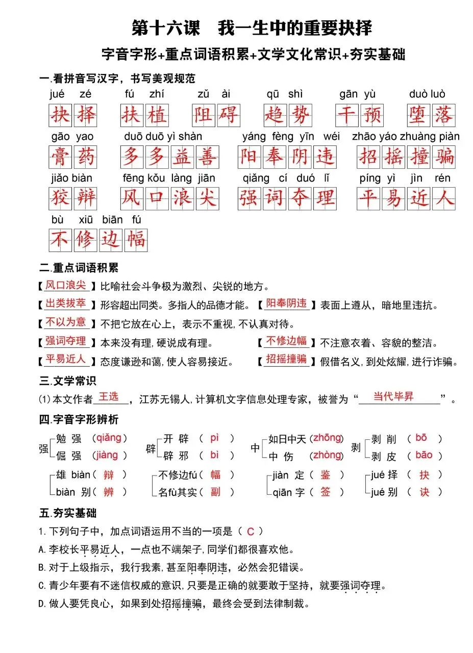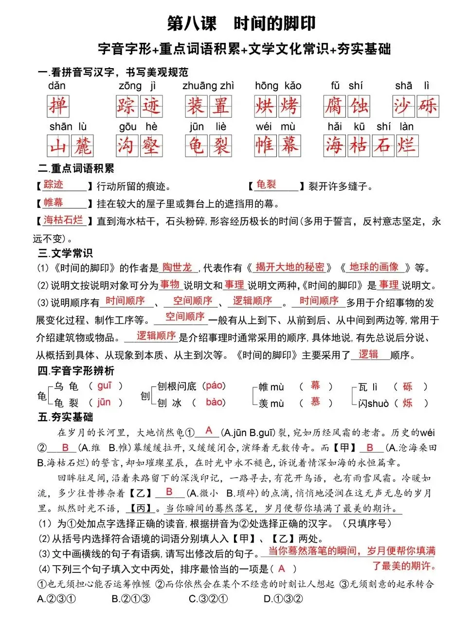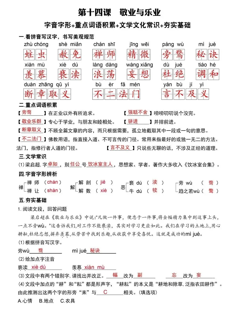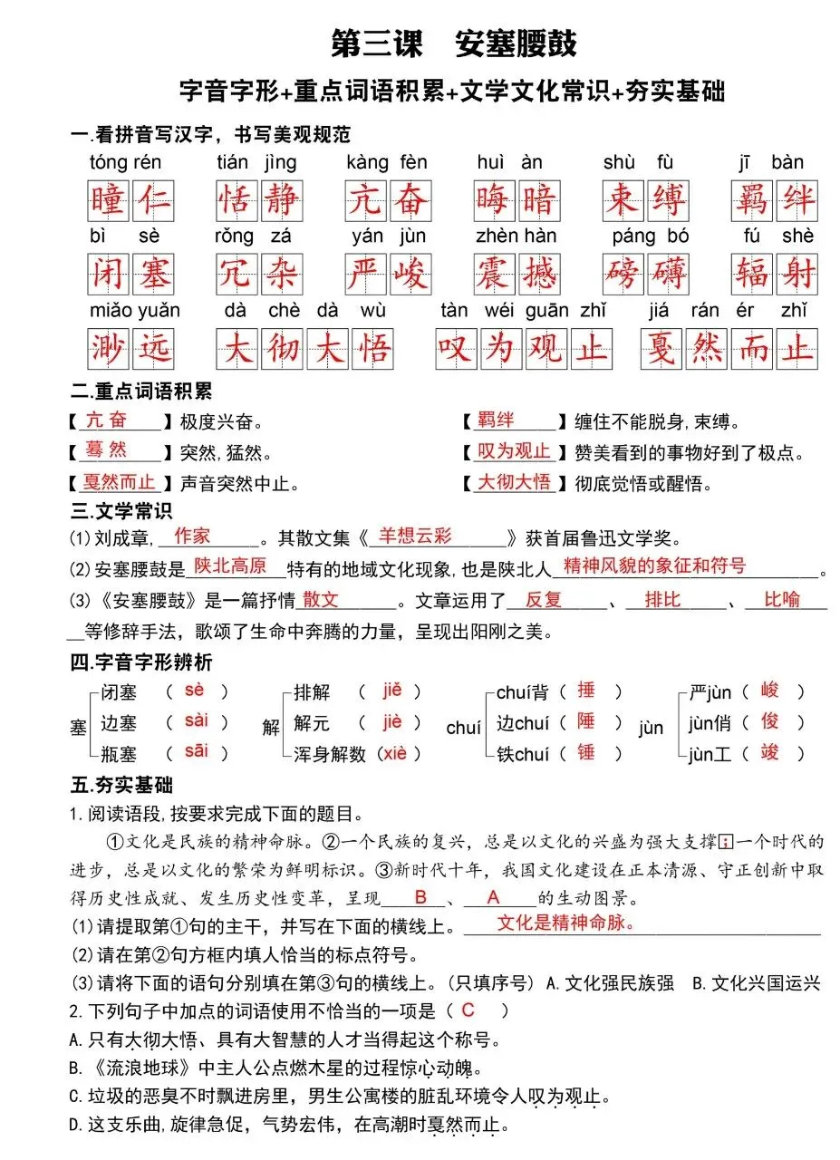 很多同学语文学习没章法,课前不预习、课后少练习,成绩一直上不去。今天给大家分享2026年最新教材八下语文课堂一课一练打印版,由老师精心整理,每一课都配套对应练习,边学边练、扎实提分。
