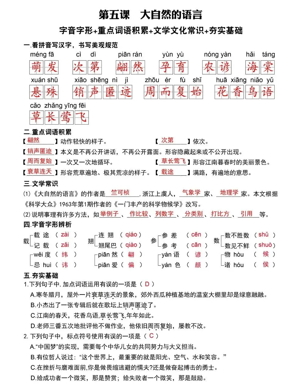 建议家长赶紧收藏打印,让孩子每课坚持练,语文成绩稳稳往上冲,考试直接拿高分!