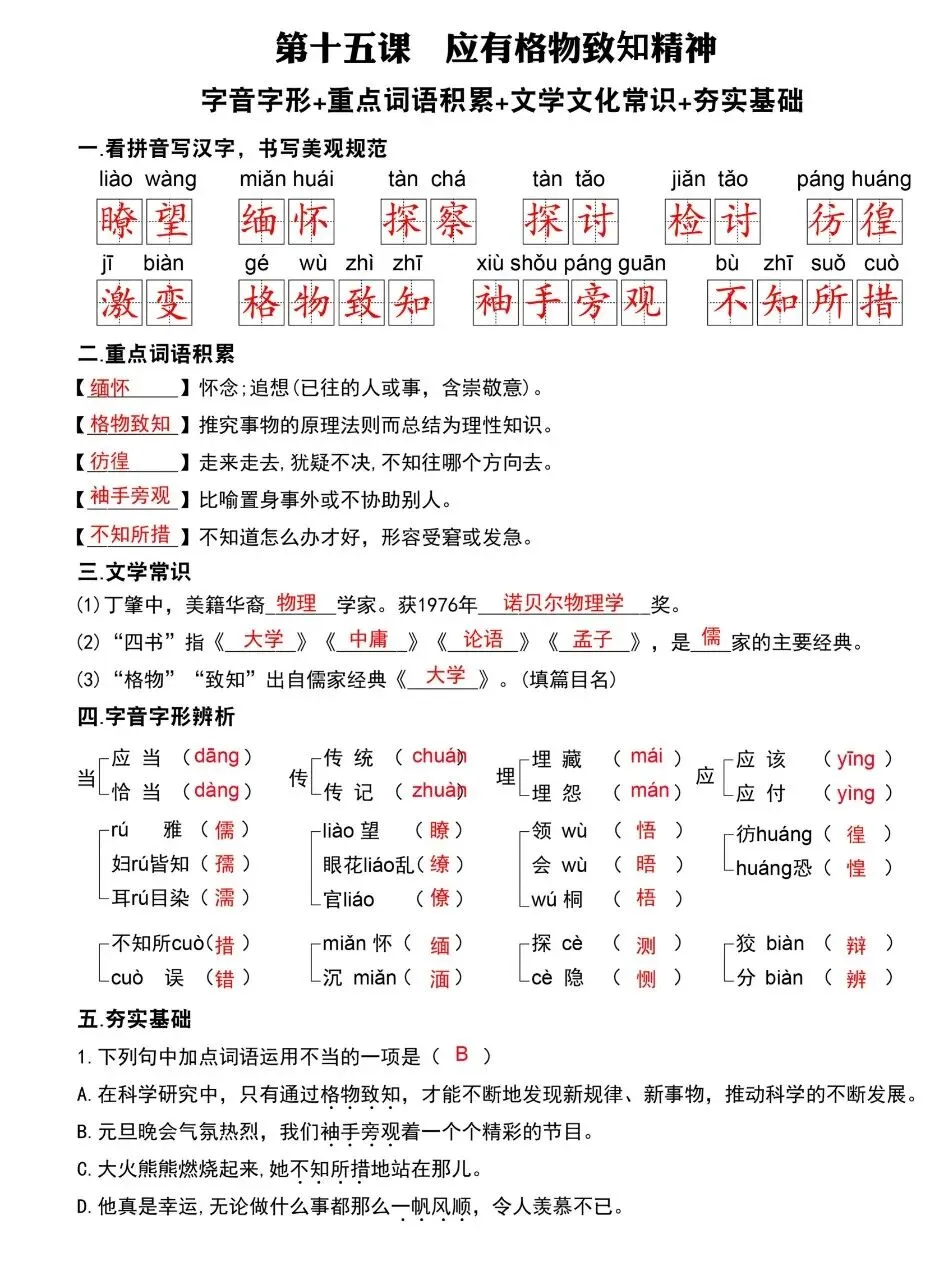 八下语文一课一练打印版,吃透这份,考试稳稳拿高分!