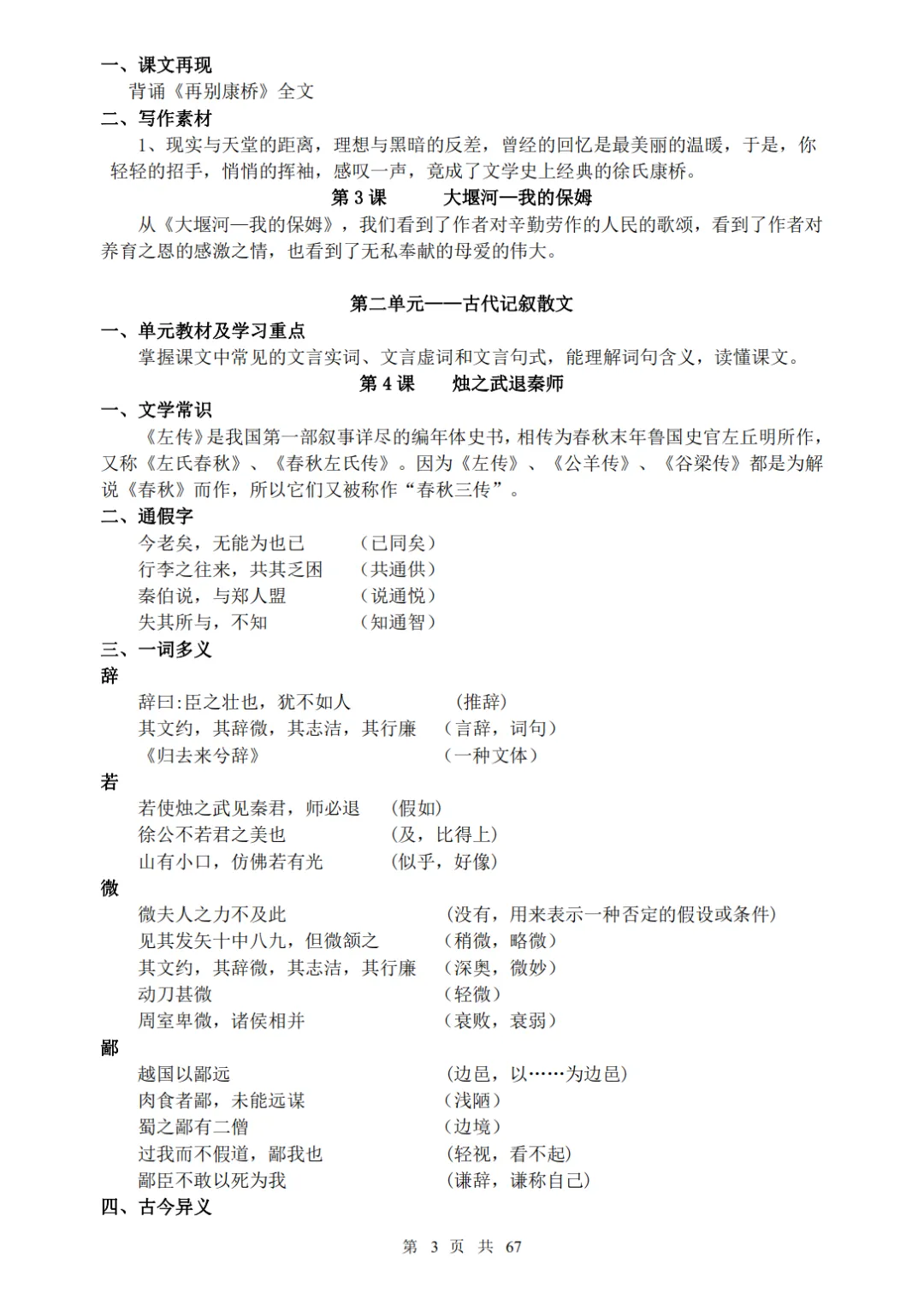 高中语文知识点归纳总结超详打印版,可免费下载打印