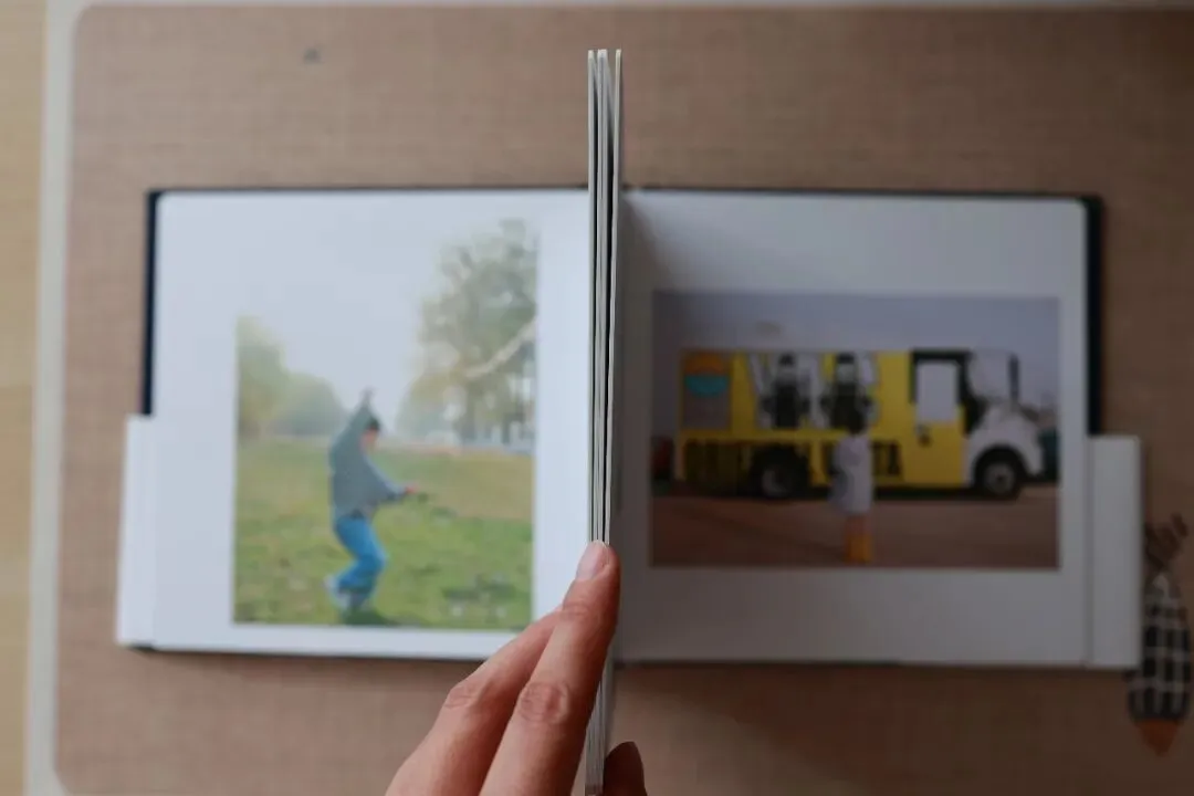 这本照片书是壹本印画专门为家庭照片出版的画册类照片书,套系里为精装布面大开本(170*225mm),拿到手里像是拿到了一本摄影集(ps:展示为赵赵为自己家庭做的小开本)