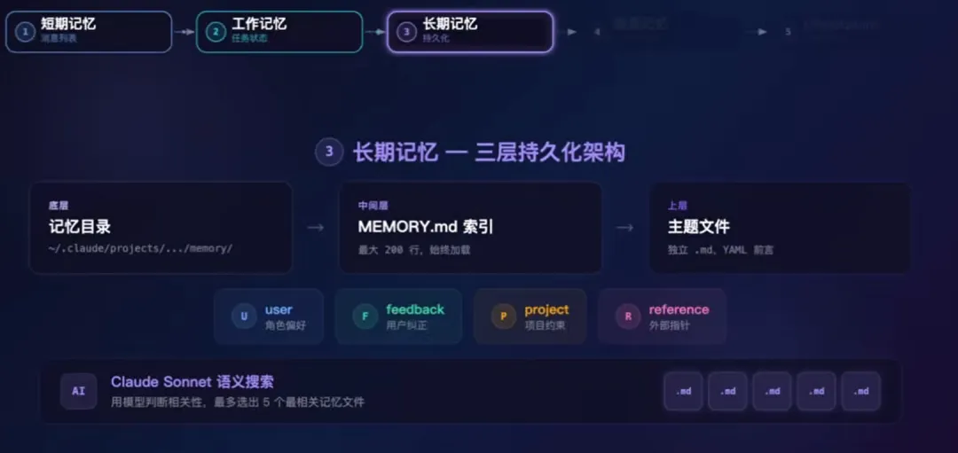 传统AI没有长期记忆,对话结束就遗忘,无法处理长周期、多步骤的复杂任务;Claude Code内置专属记忆模块,完整记录历史操作、上下文状态、任务进度。