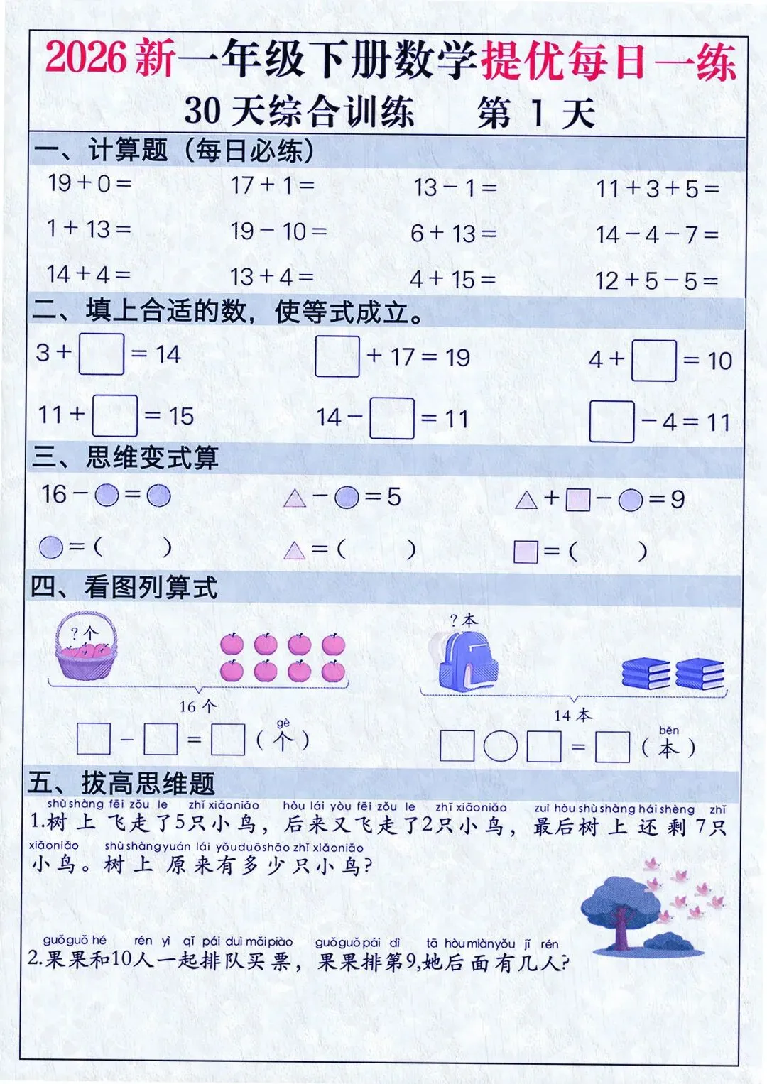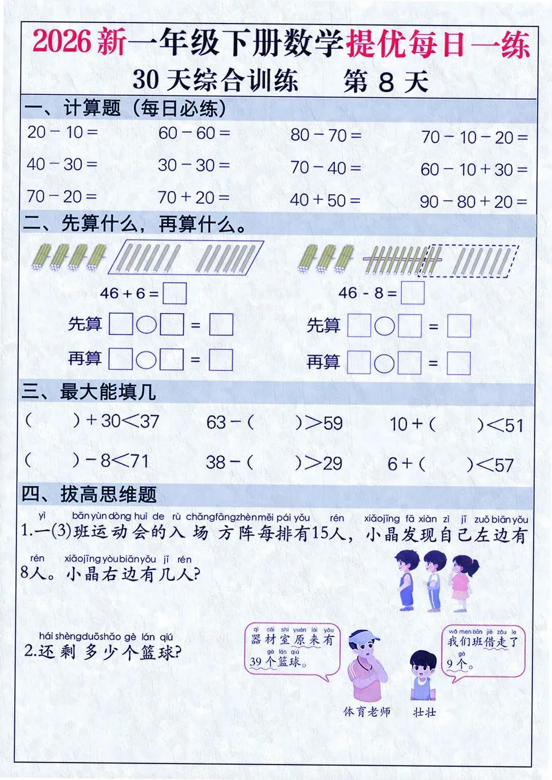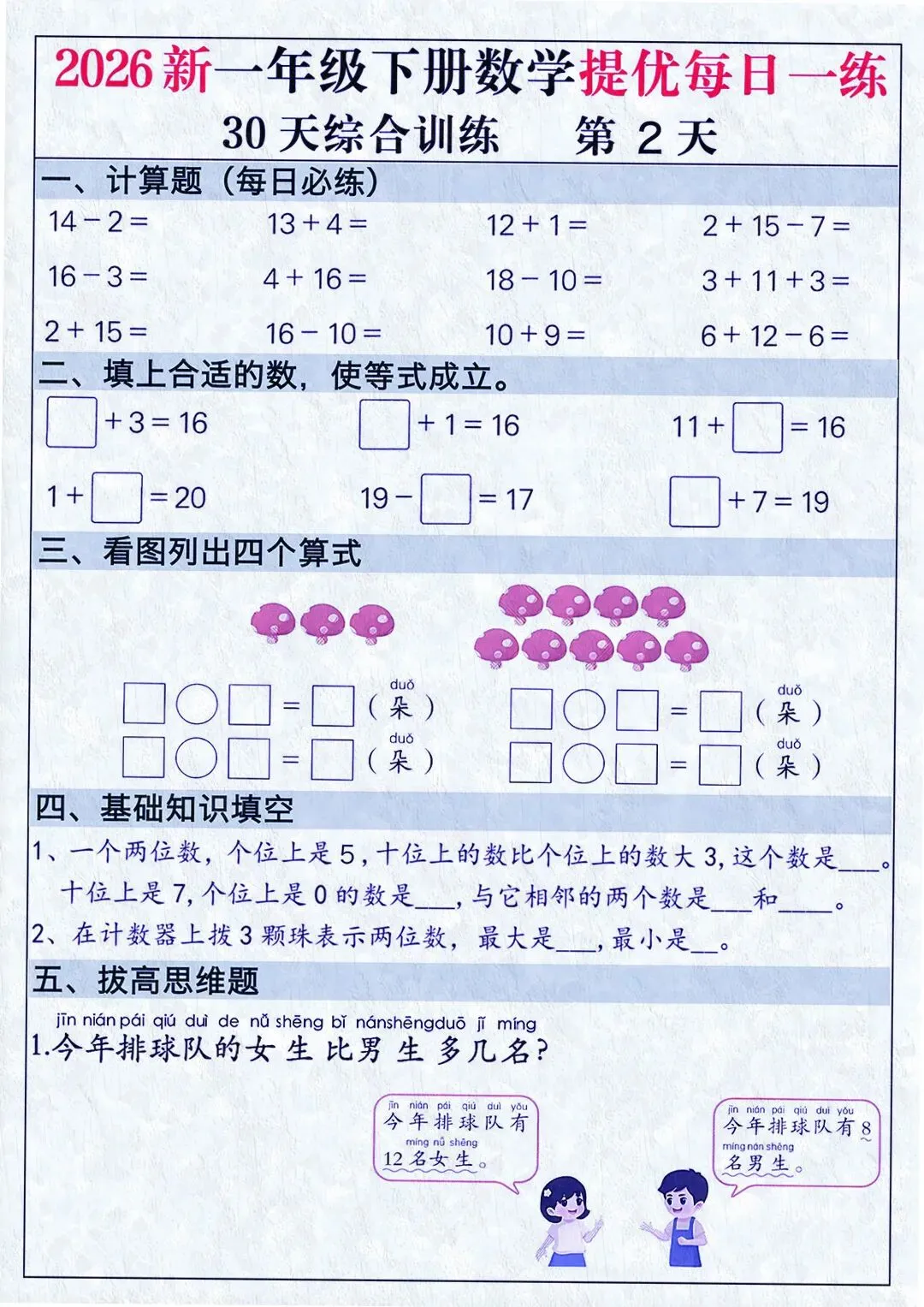26新一年级下册数学综合提优每日一练高清可打印PDF