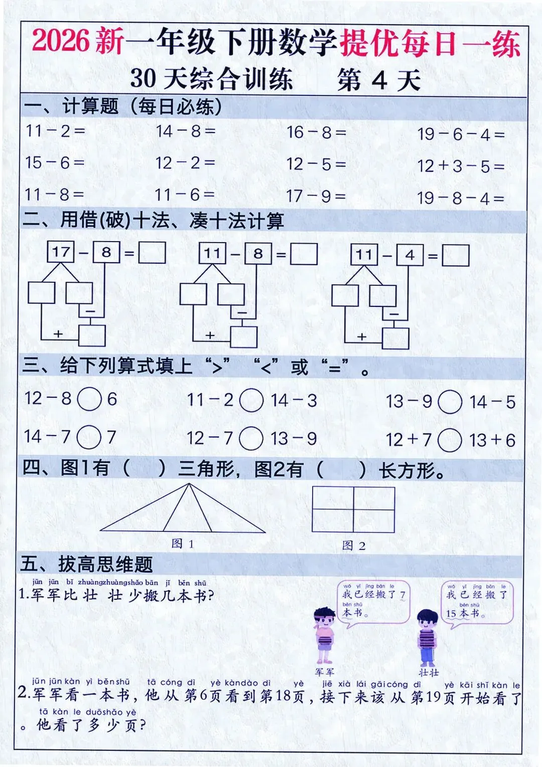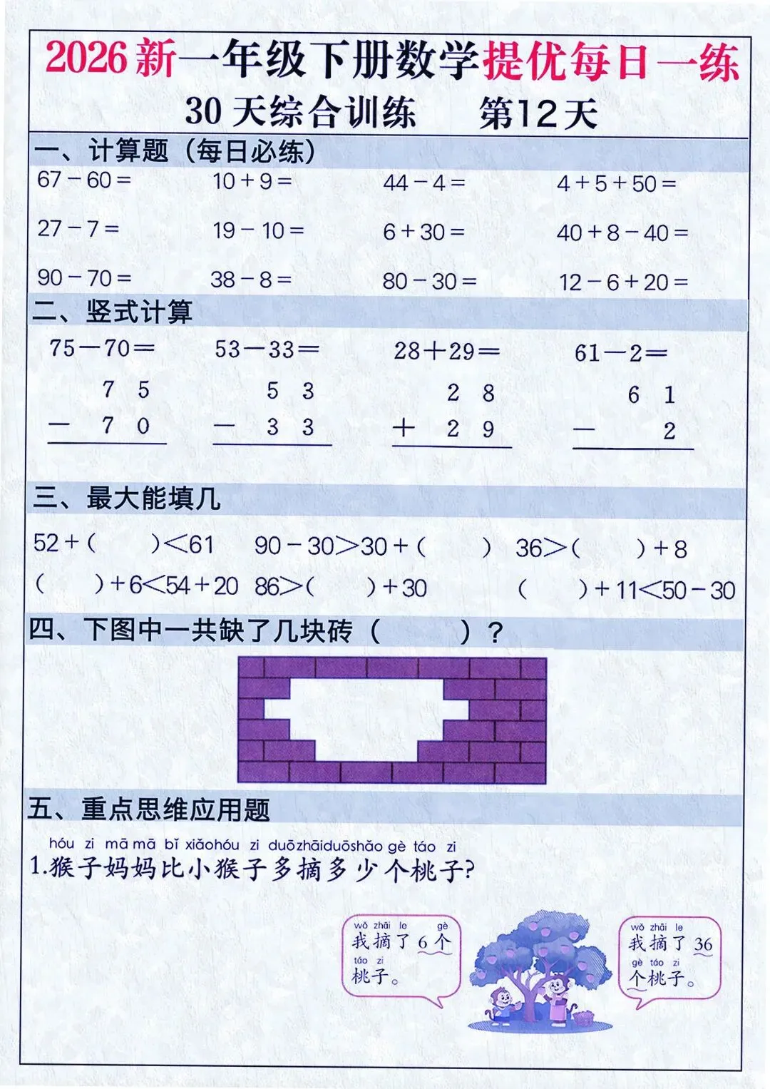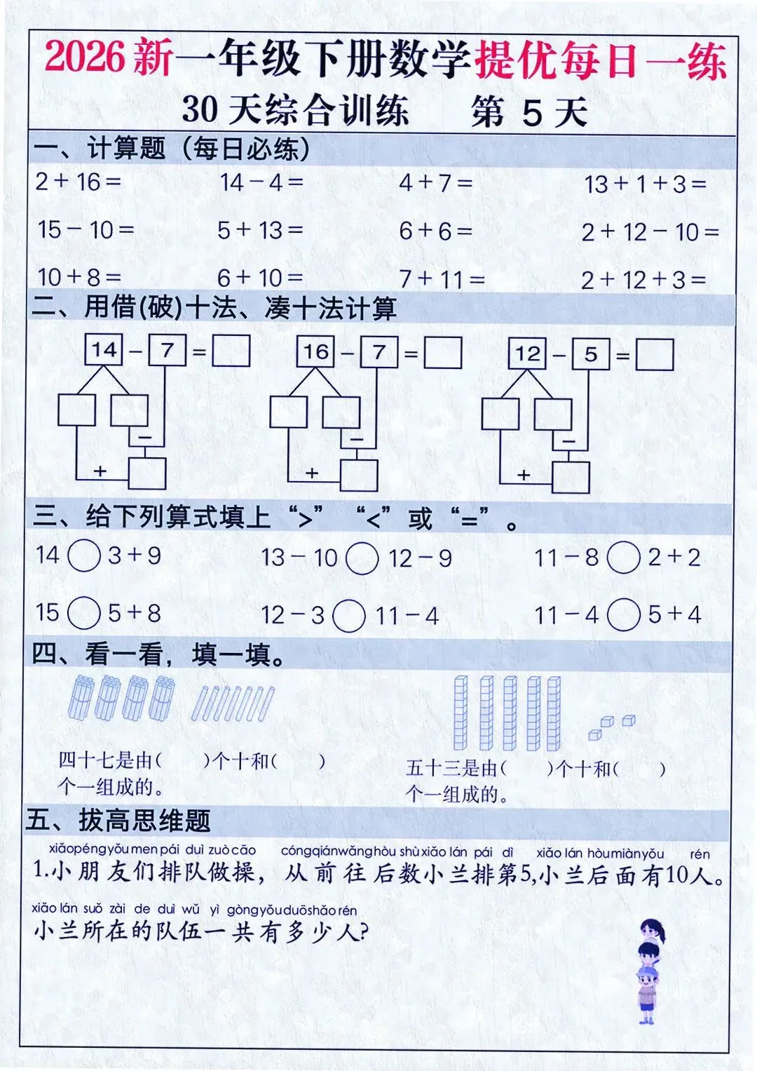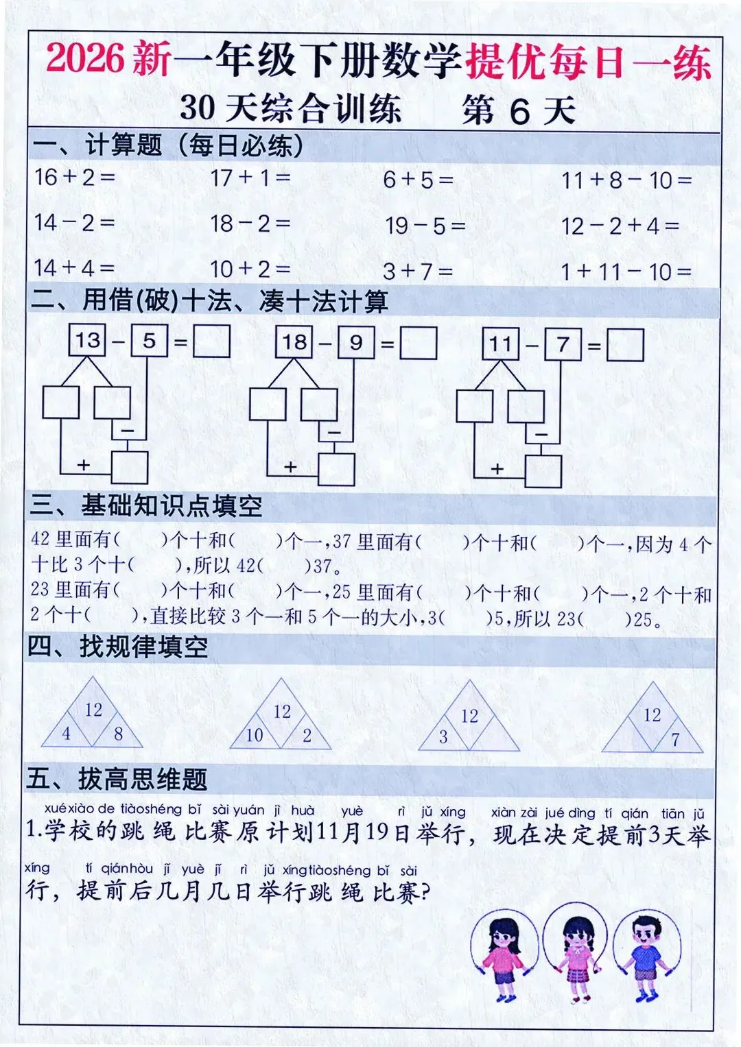 26新一年级下册数学综合提优每日一练高清可打印PDF