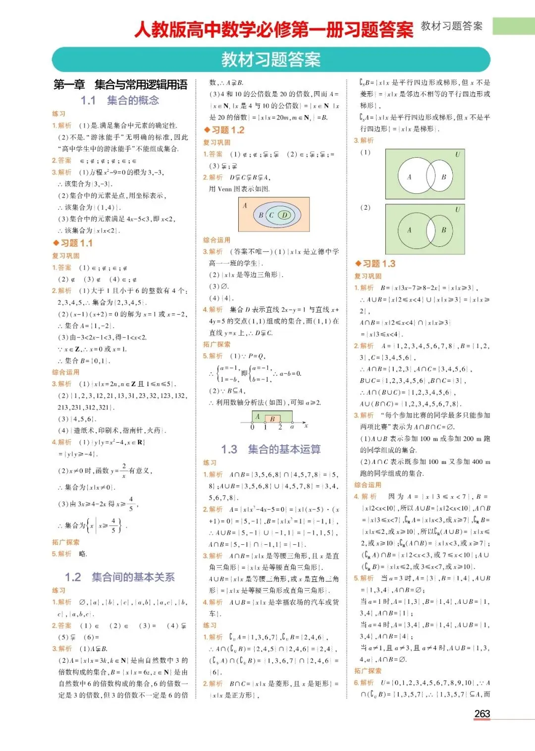 人教版高中数学必修一课后习题答案解析,PDF高清电子版,可下载打印!