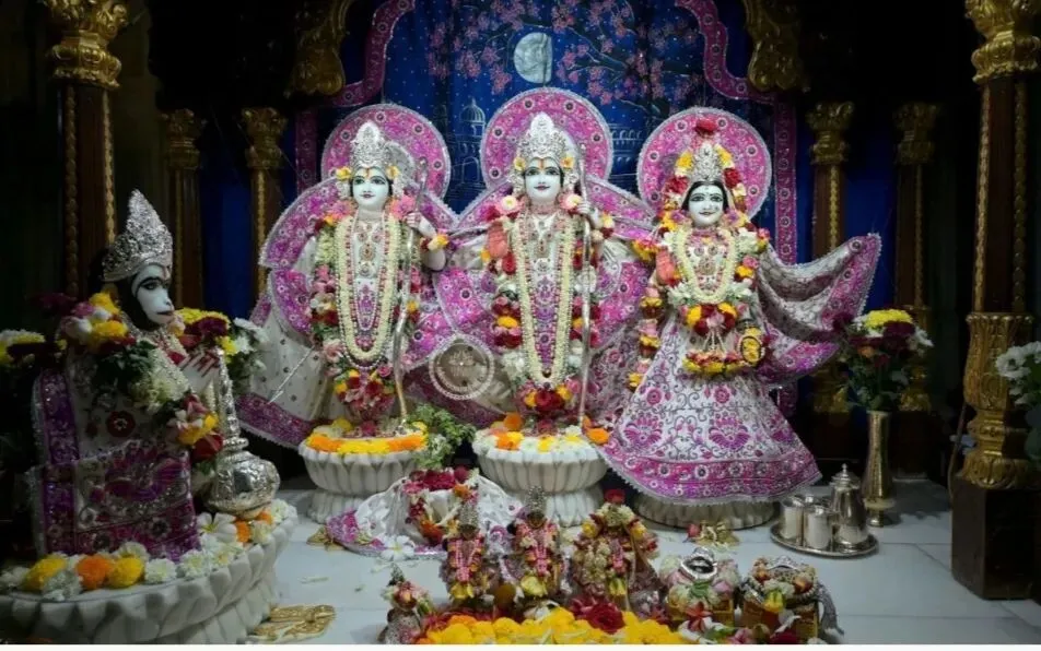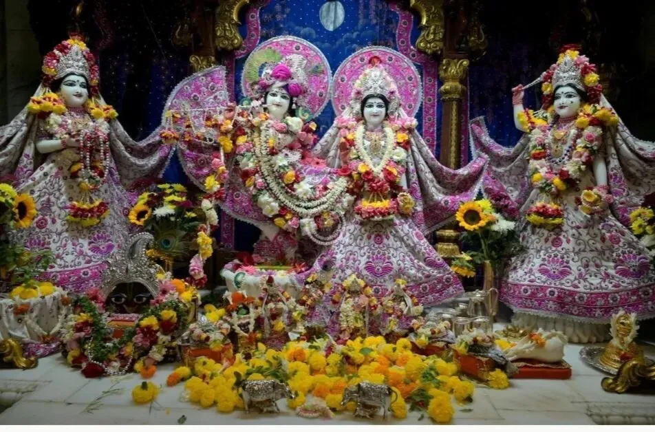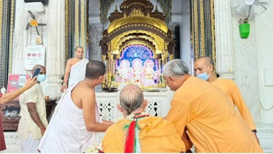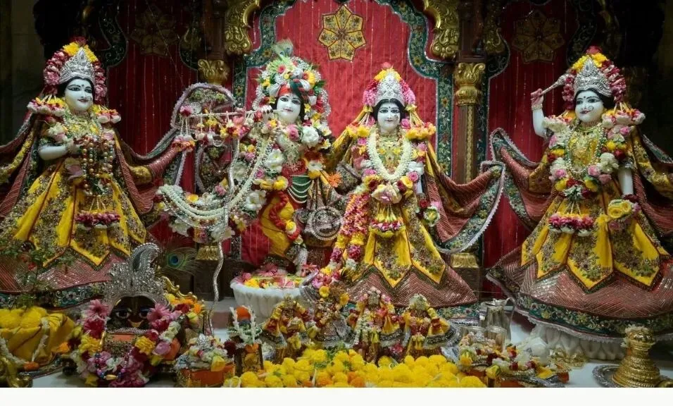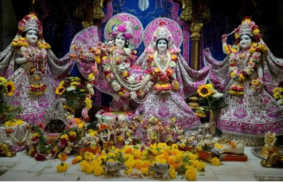 透析结束后,我来到了曼迪尔。我进行了达尔善,并向施瑞•施瑞•高茹阿•尼太、施瑞拉•帕布帕德、施瑞拉•巴克提希丹塔•萨茹阿斯瓦缇•塔库尔、施瑞•施瑞•茹阿达•茹阿萨比哈尔依•拉丽塔•维莎卡的塔库尔们,以及施瑞•施瑞•悉塔•茹阿玛•拉珂施曼和哈努曼的塔库尔们献上了阿尔提。