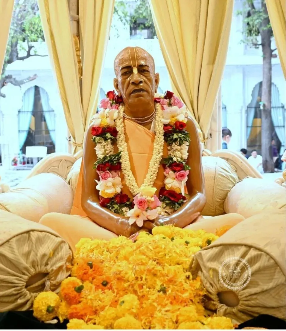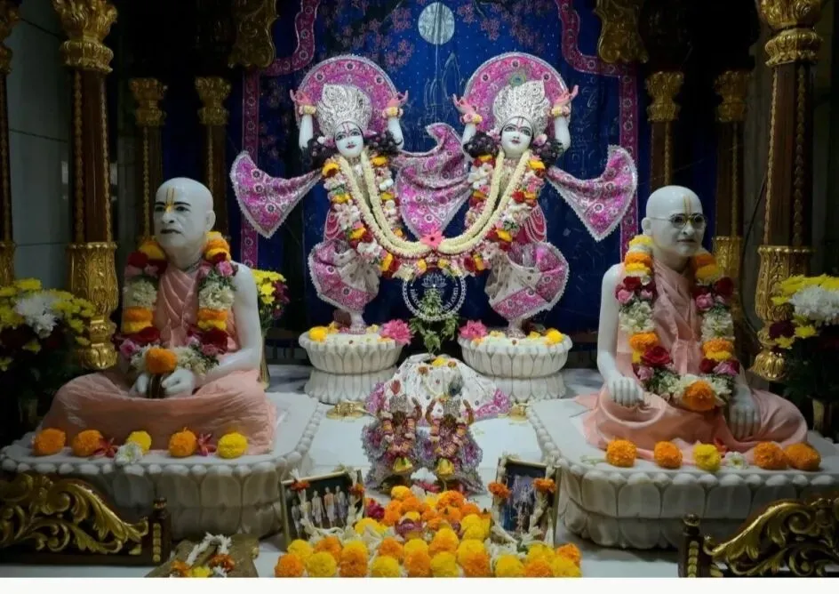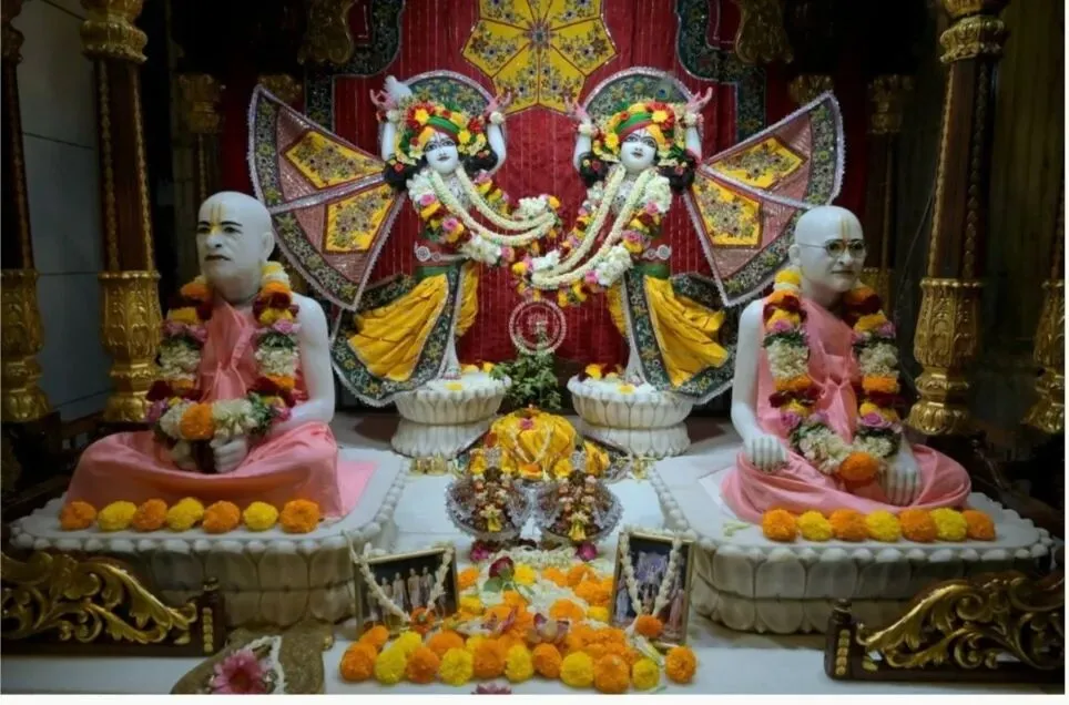 我向施瑞•施瑞•高茹阿•尼太、施瑞拉•帕布帕德、施瑞拉•巴克提希丹塔•萨茹阿斯瓦缇•塔库尔,向瑞•施瑞•茹阿达•茹阿萨比哈尔依•拉丽塔•维莎卡的塔库尔们,以及施瑞•施瑞•悉塔•茹阿玛•拉珂施曼和哈努曼的塔库尔们献上了阿尔提。之后我们又去了帕拉达•尼星哈戴瓦那里,献上了灯。