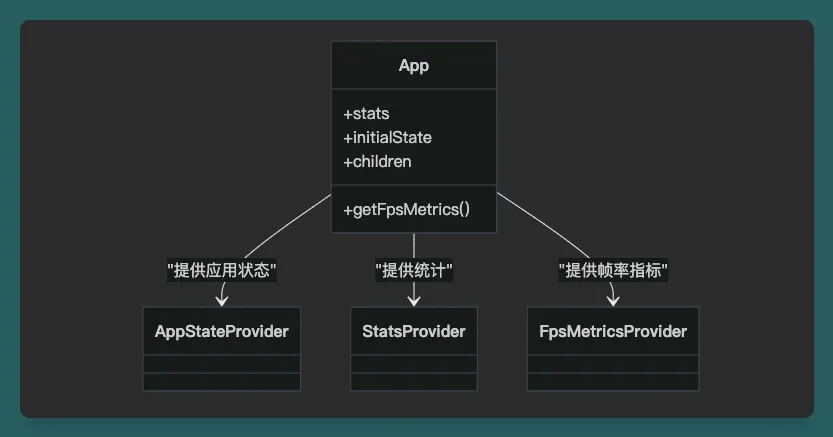 终端 UI 与状态管理:App 组件提供三层上下文(应用状态、统计信息、帧率指标),并与 Ink 渲染引擎协同实现终端富文本与响应式布局。