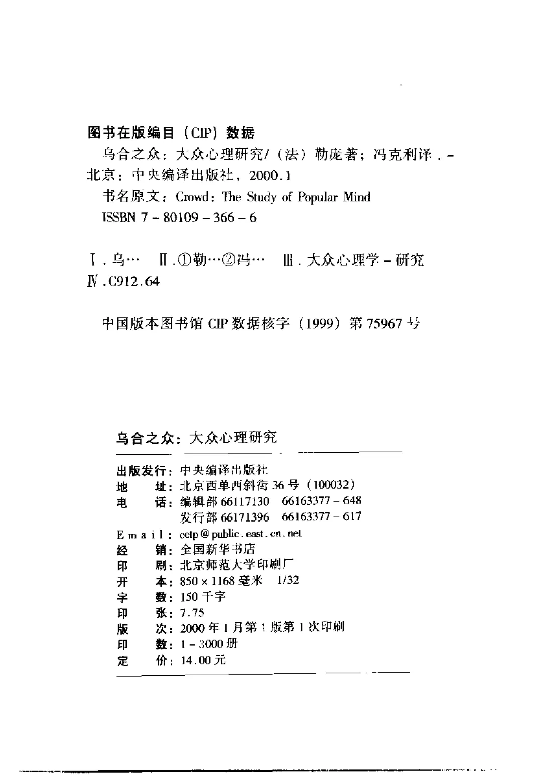 231页PDF|乌合之众:大众心理研究.(法).古斯塔夫.勒庞(附下载)