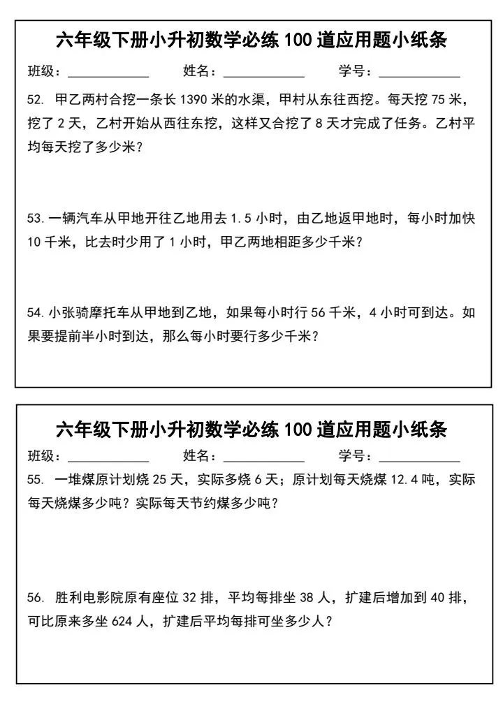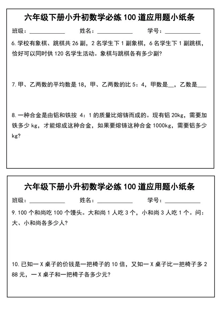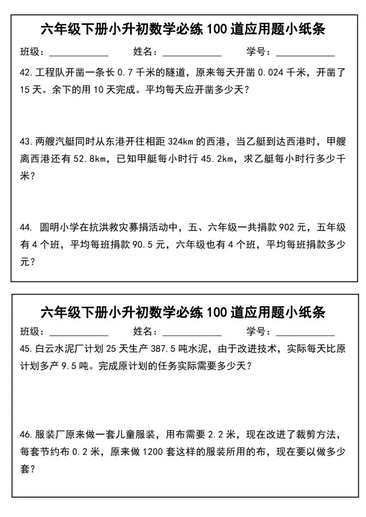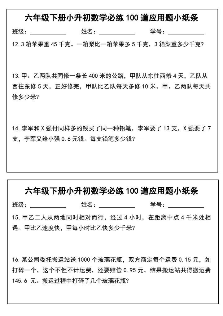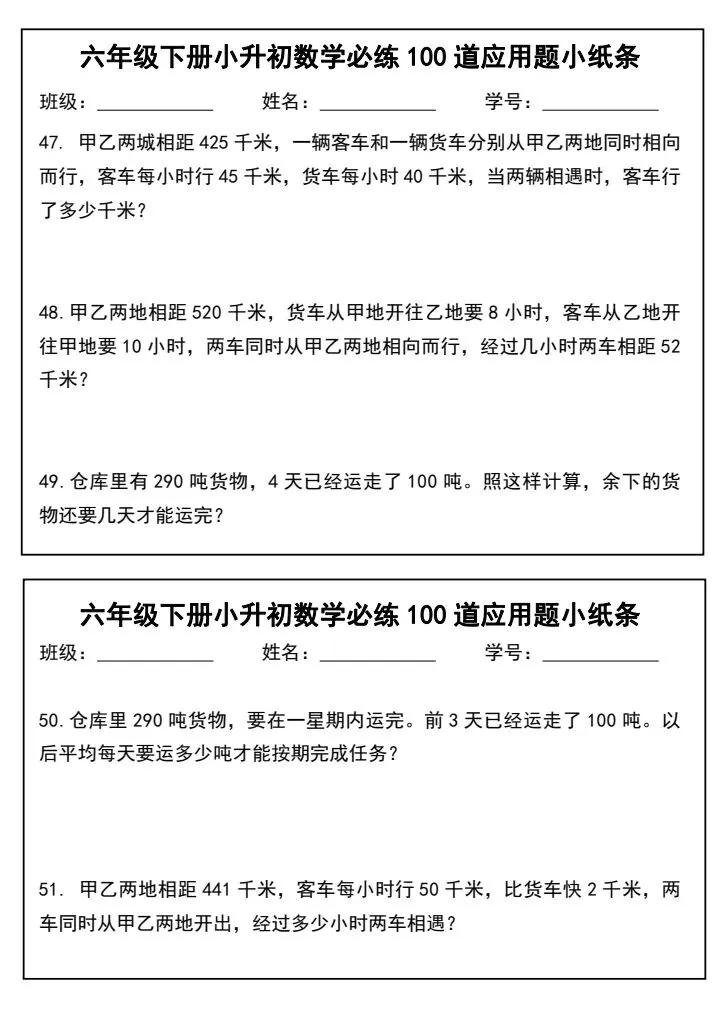 小升初数学应用题必练100道(完整电子版可打印)