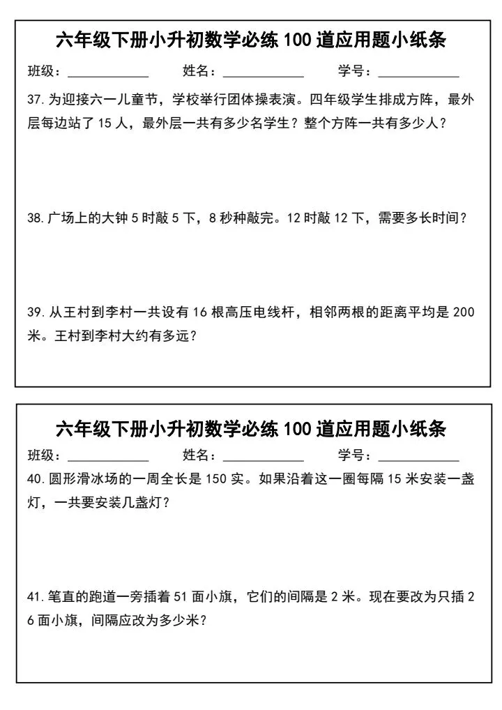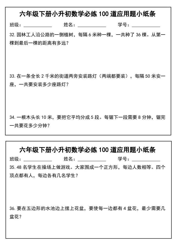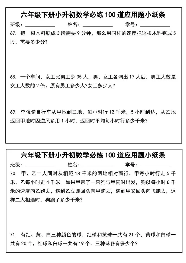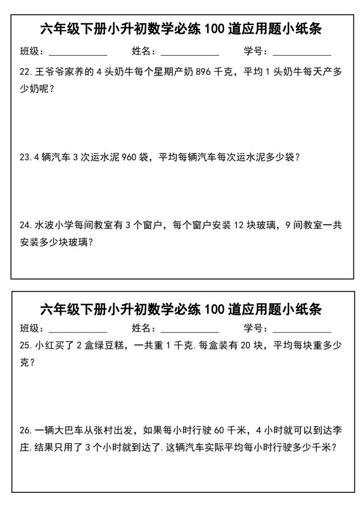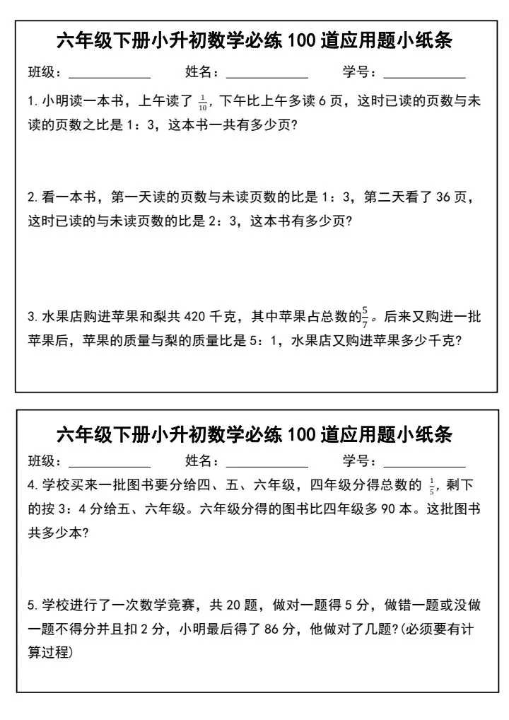 小升初数学应用题必练100道(完整电子版可打印)