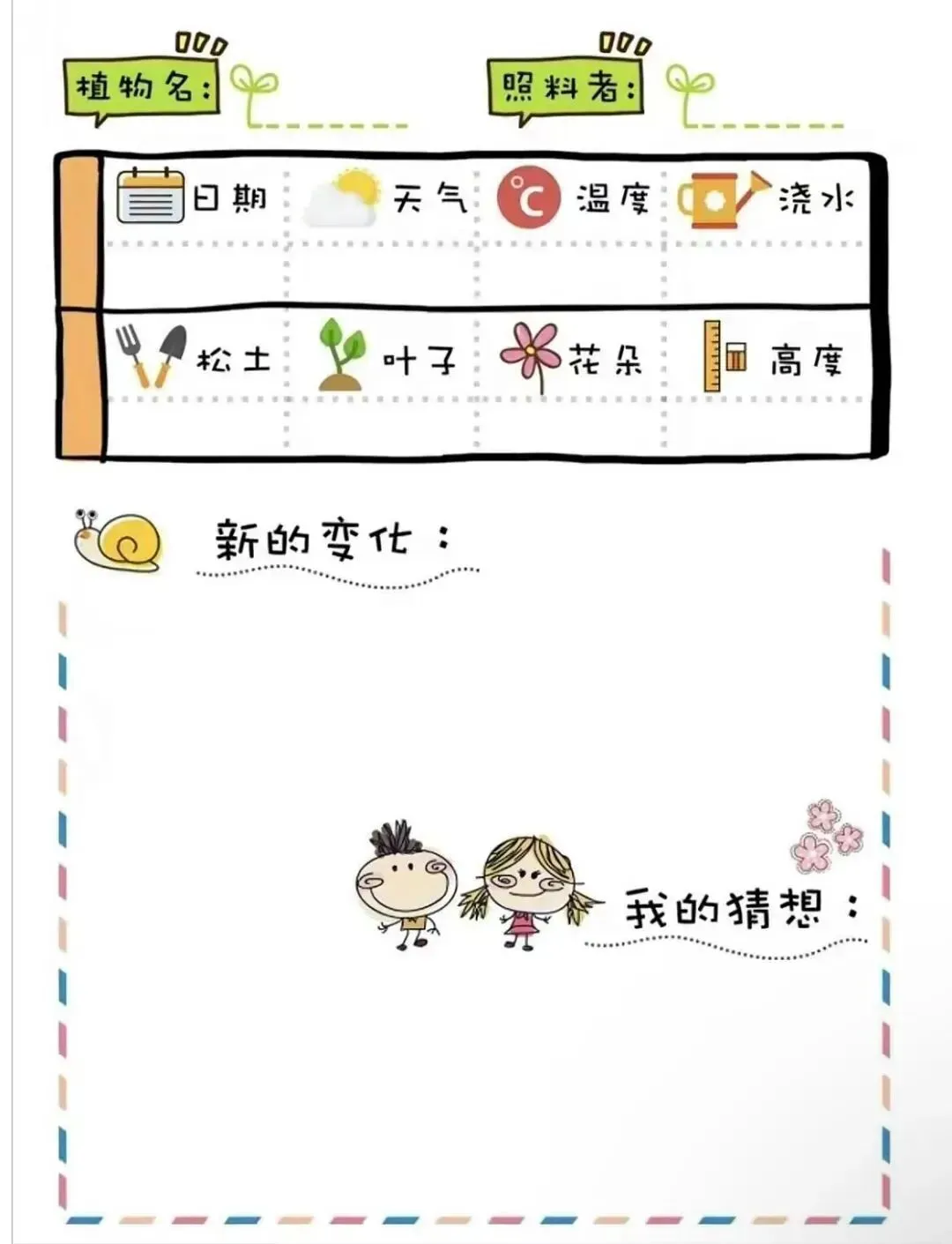 幼儿园环创|植物角观察记录表|可打印素材
