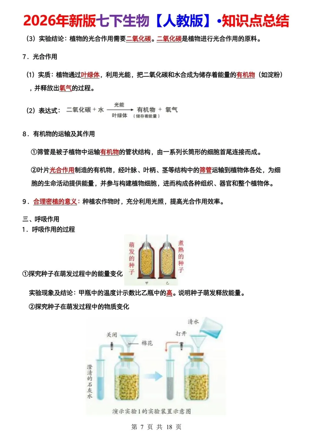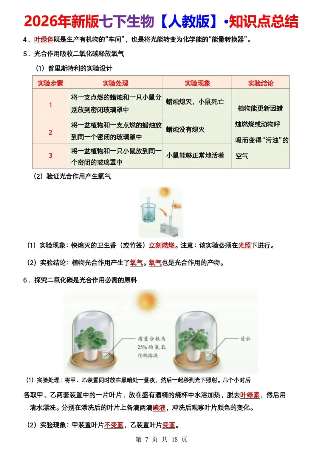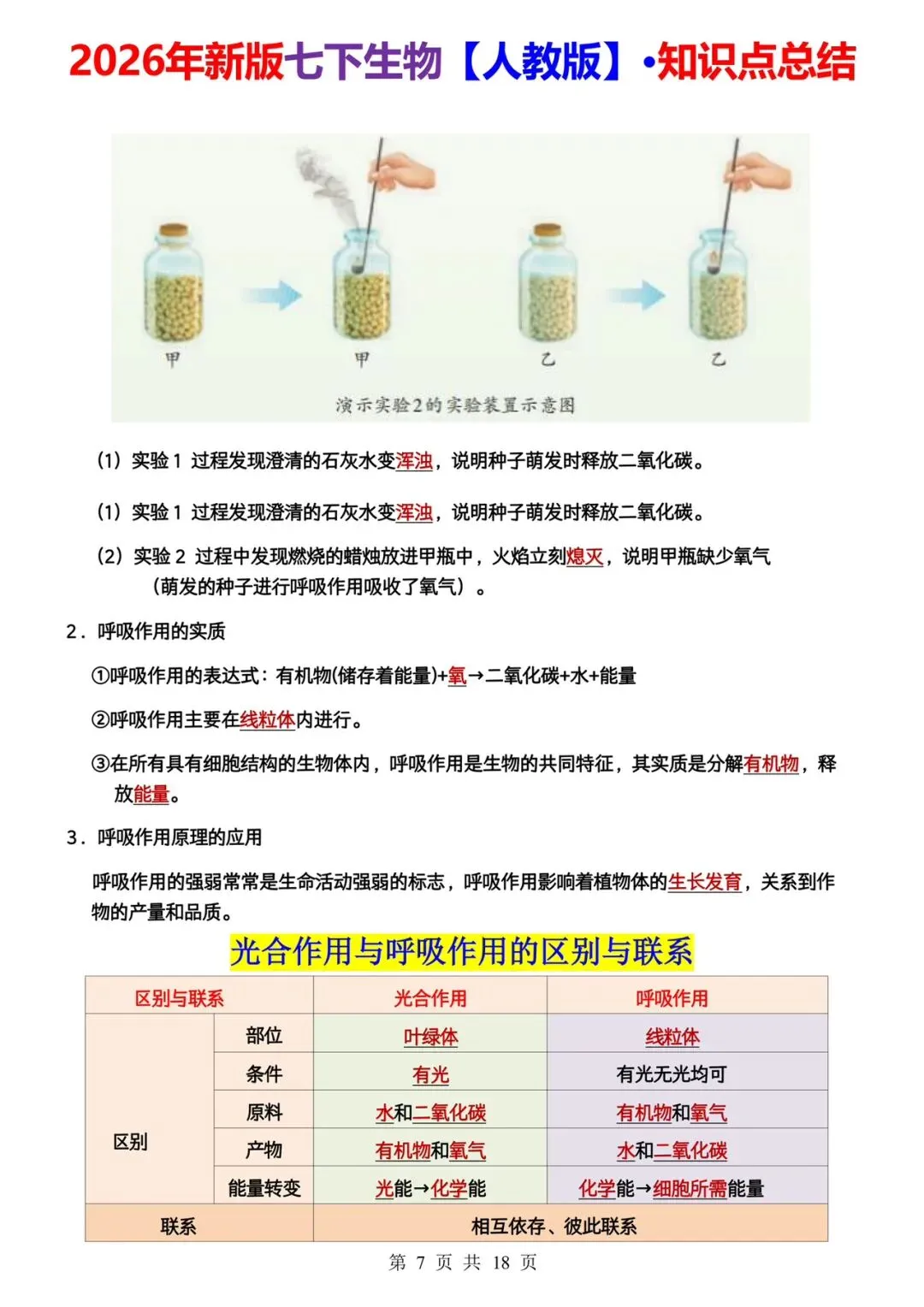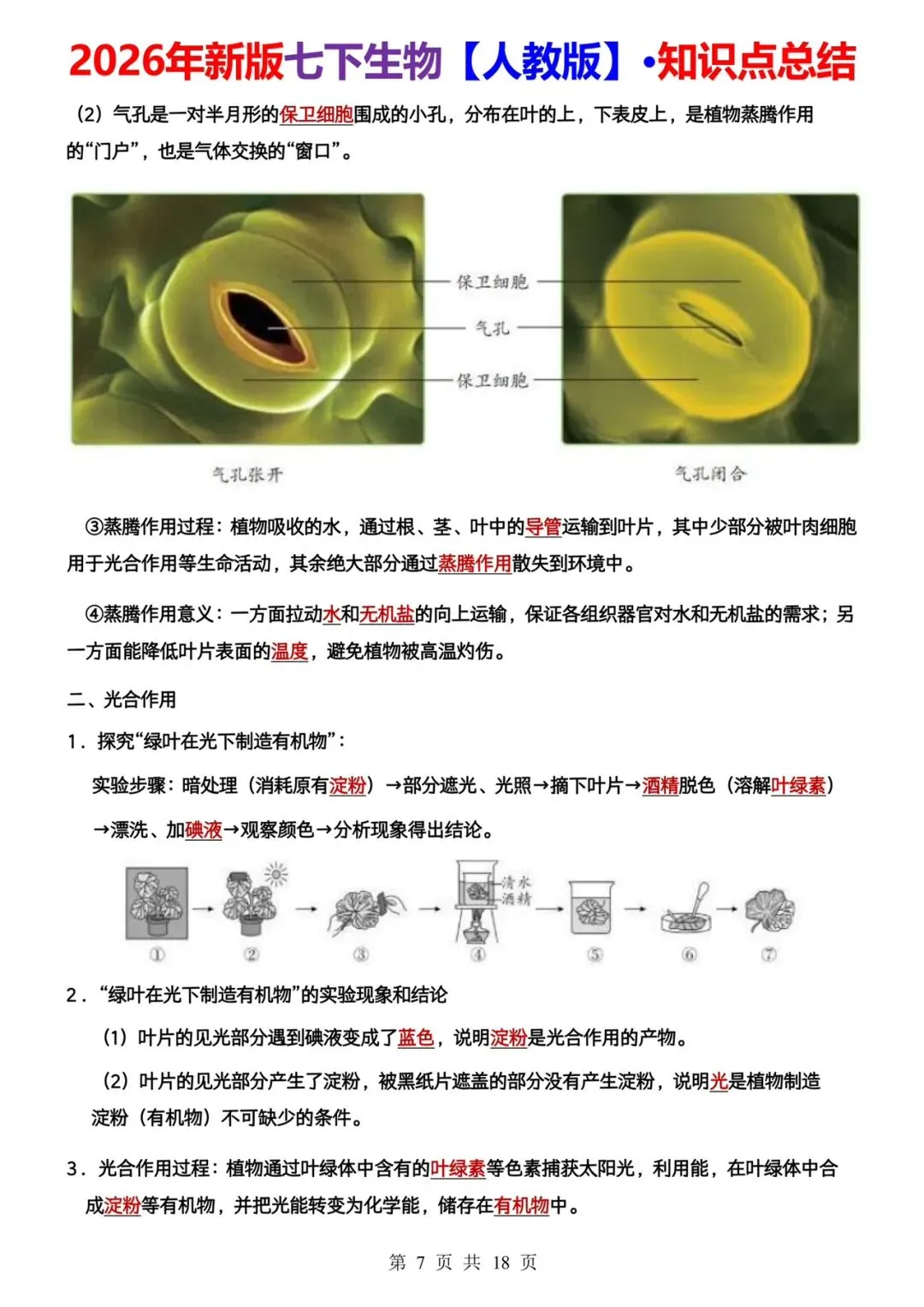 大家好,今天老师整理了:2026版七年级下册生物知识点清单,可打印电子版!