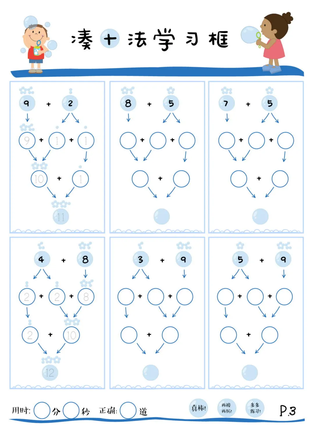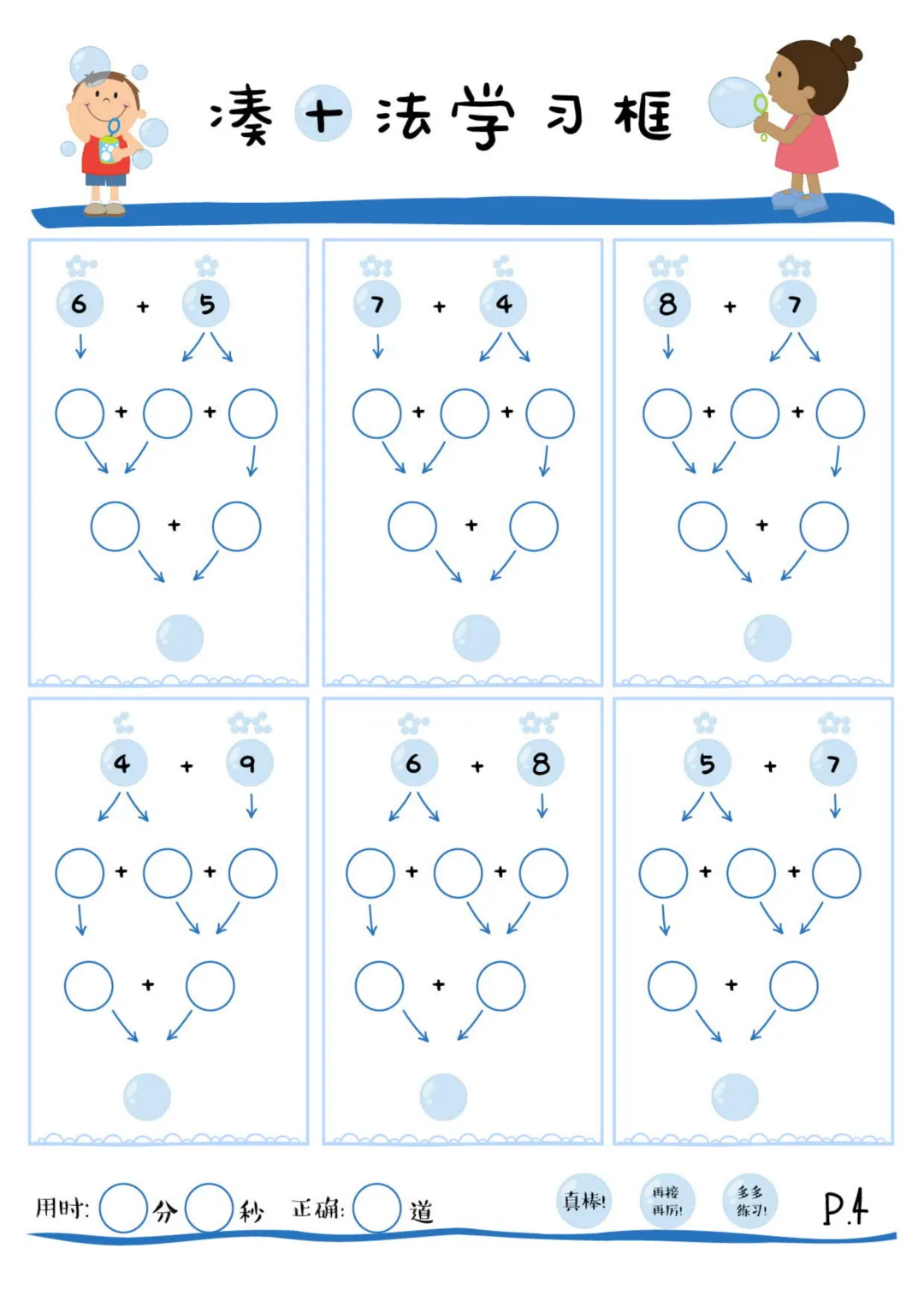 幼小衔接数学 《凑十法练习》,电子版可下载可打印