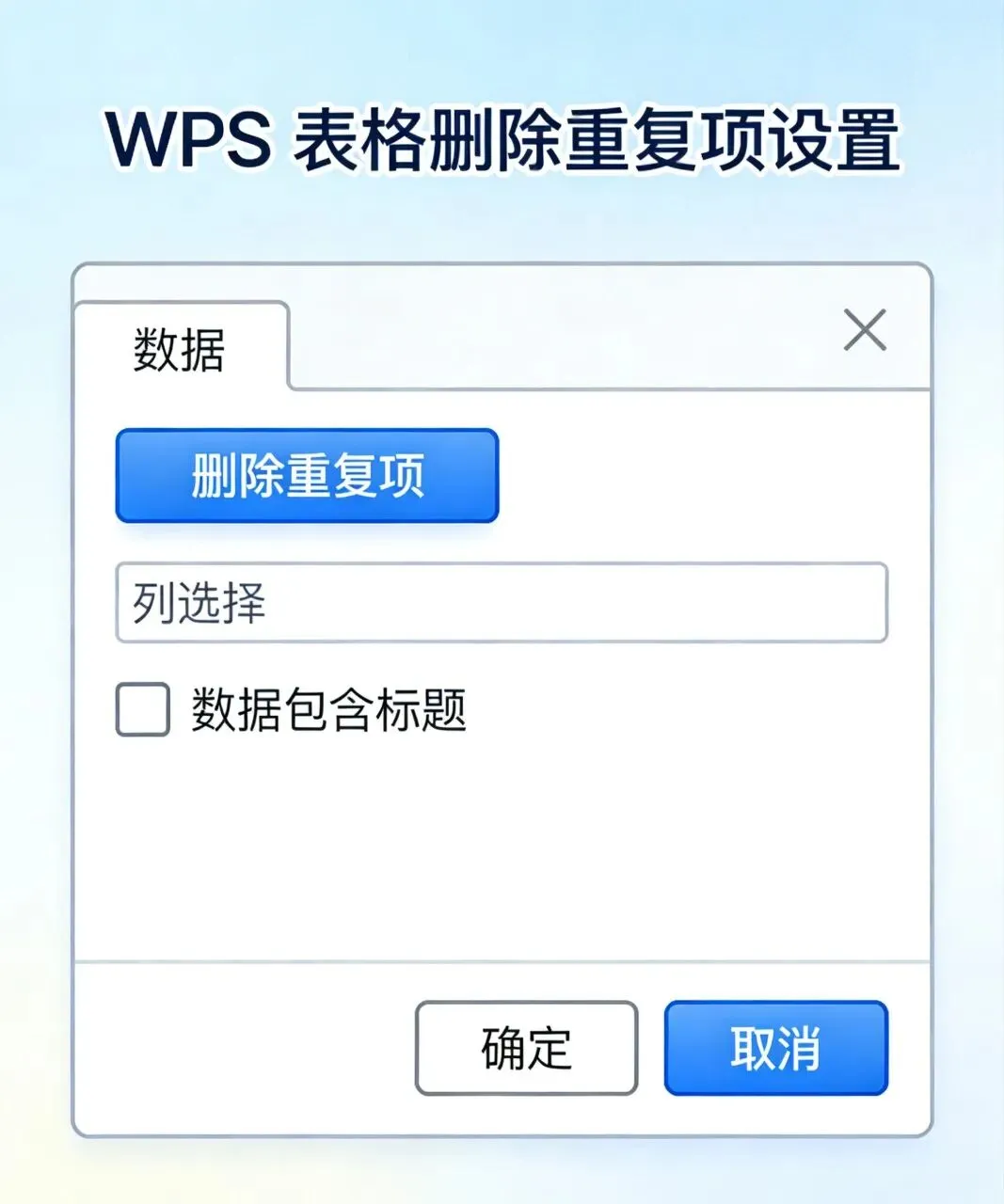 2. 勾选数据包含标题,选择要去重的列