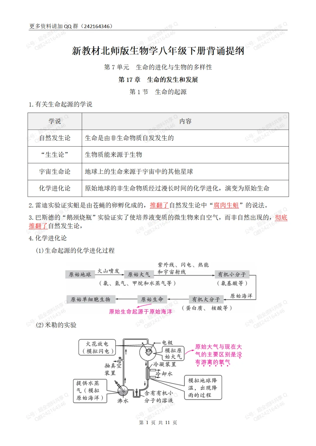 新教材北师版生物学八年级下册背诵提纲(pdf分享)