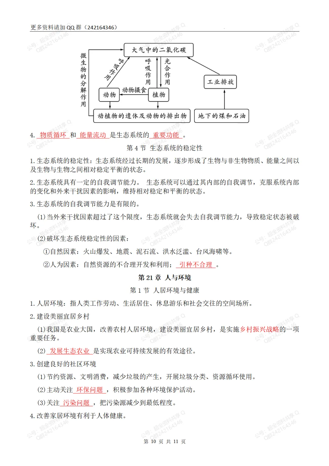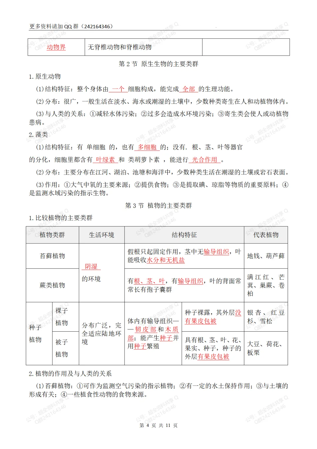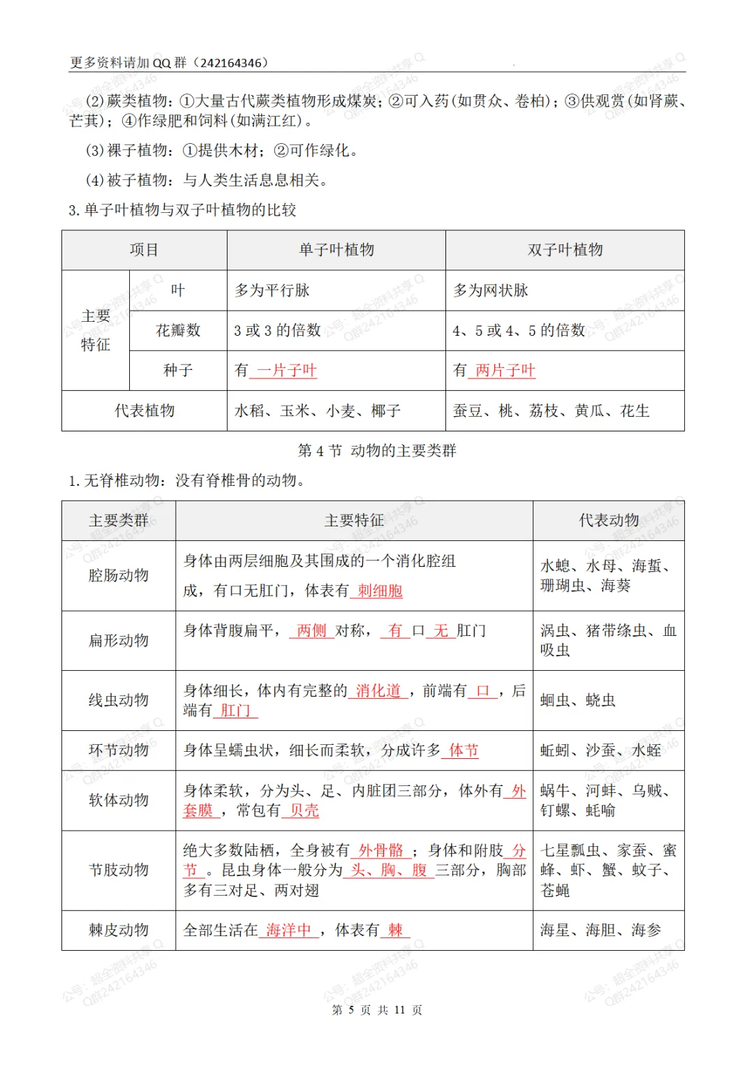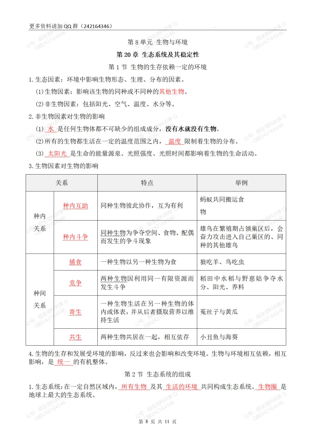 181.初中生物7-8年级知识点总结(初二结业考试必备)(pdf分享)