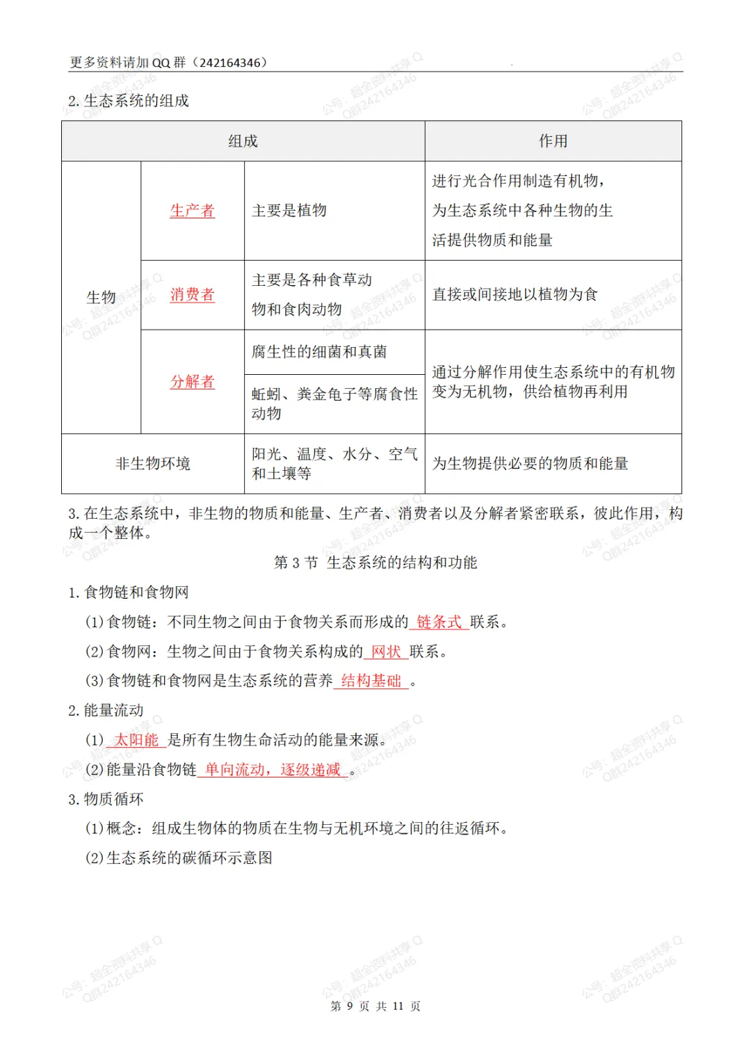 175.2024年秋季生物新教材人教版七年级上册知识点归纳总结(填空版+答案版)(pdf分享)
