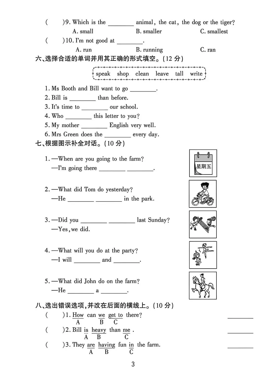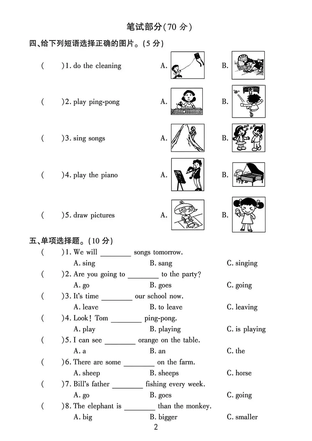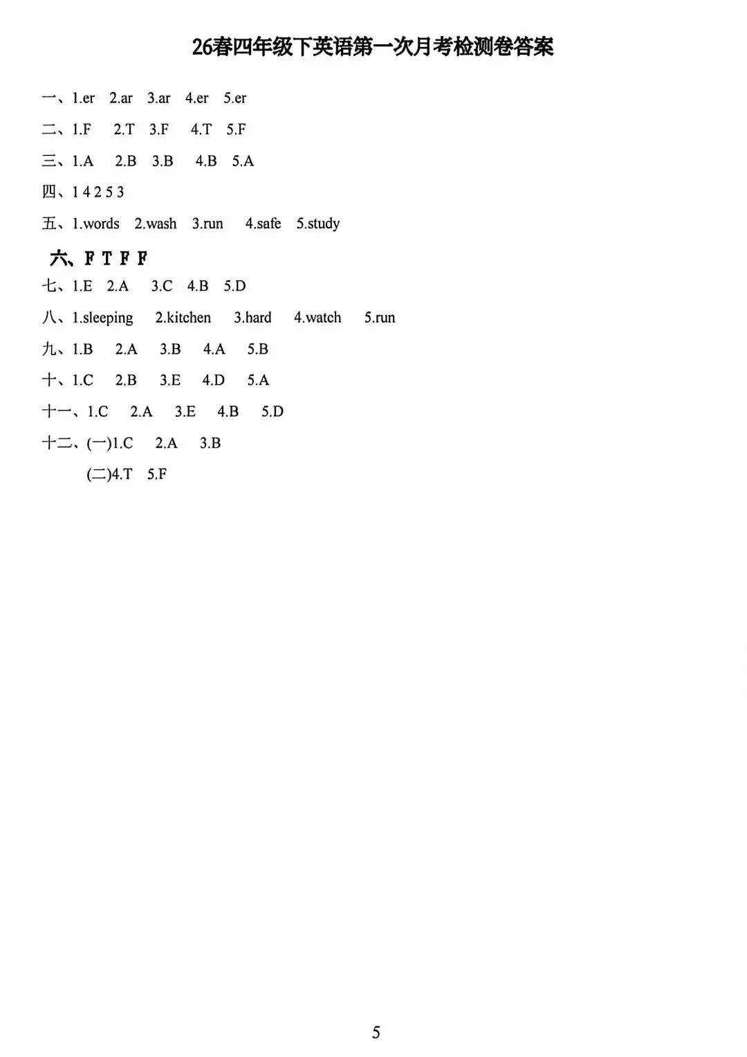 人教版3—6年级英语下册第一次月检测(可下载)
