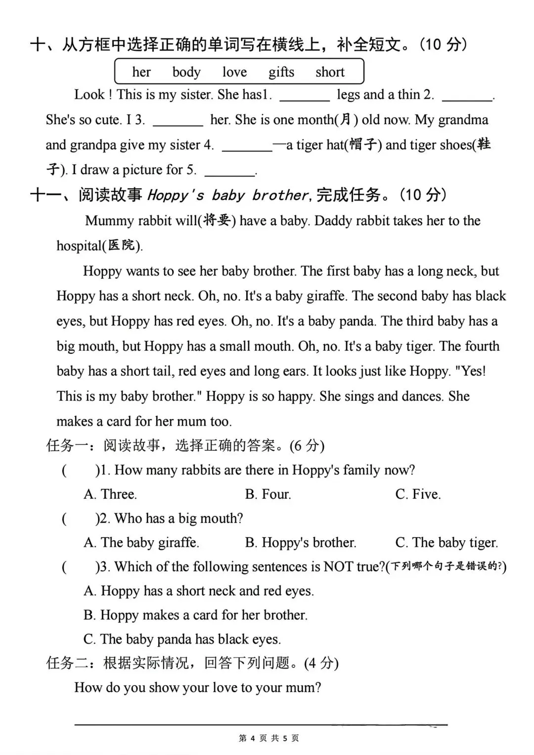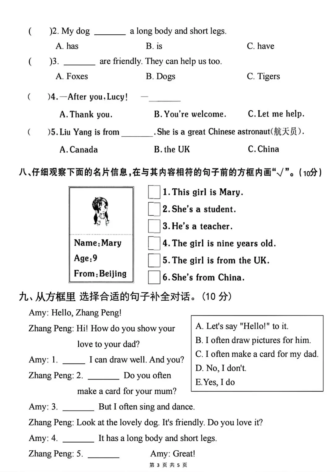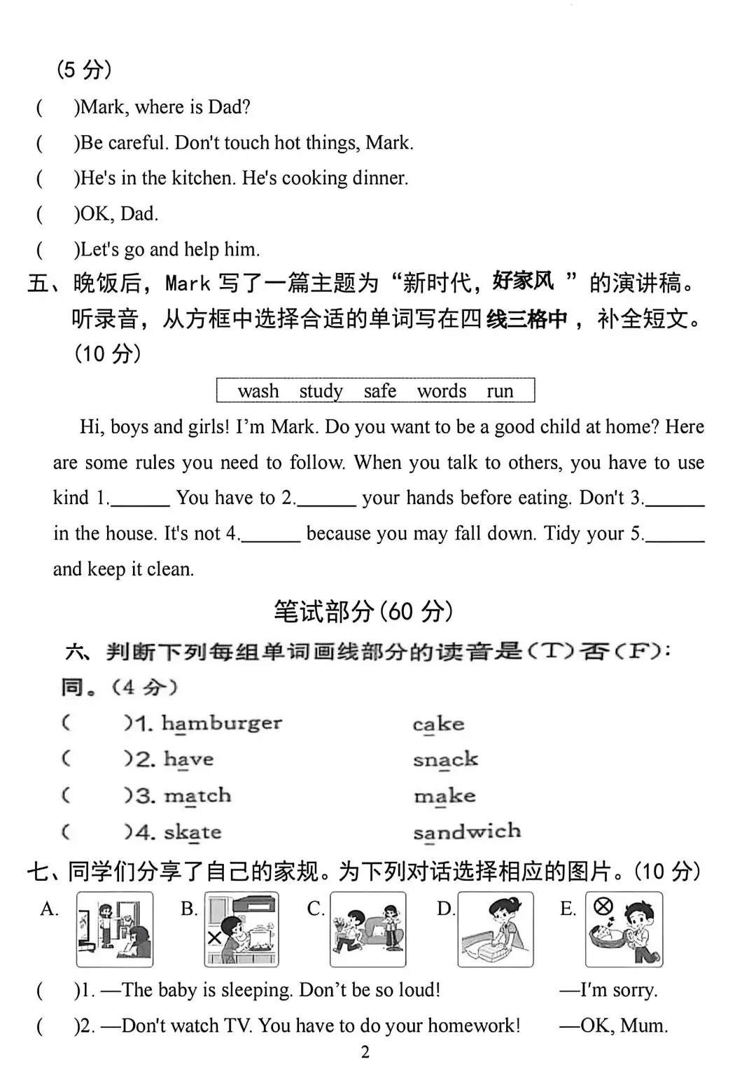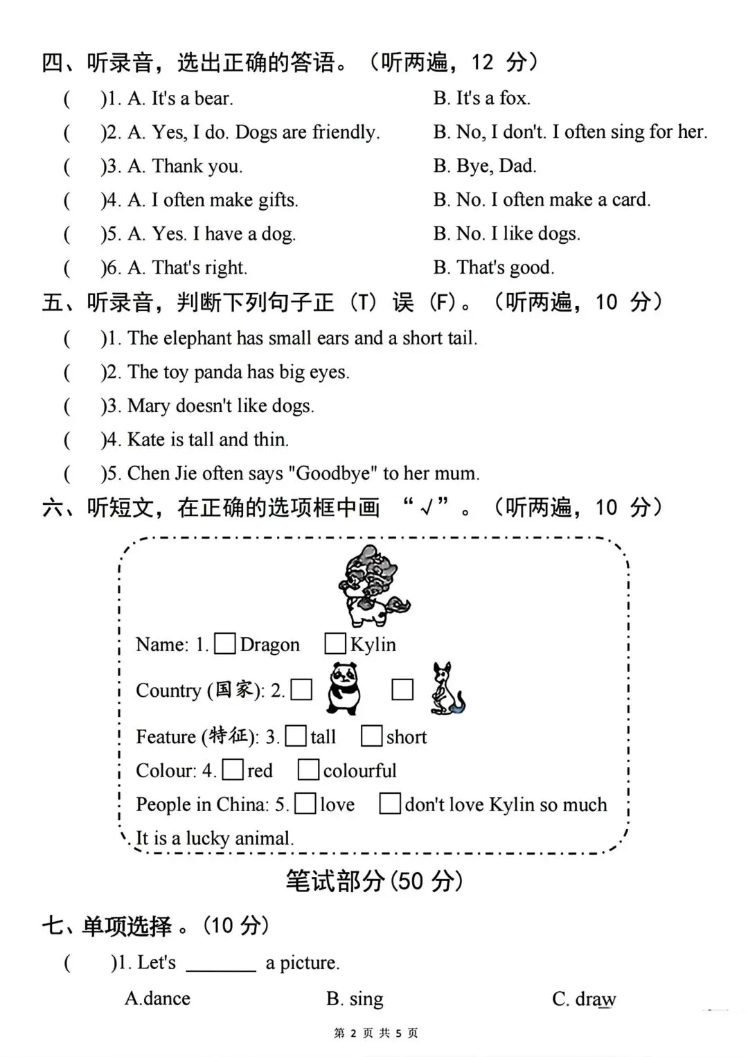 人教版3—6年级英语下册第一次月检测(可下载)